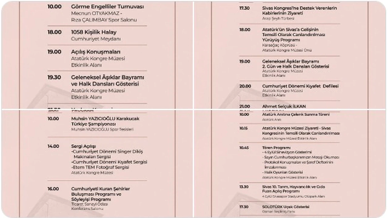 Sivas Kongresi’nin yıldönümü etkinlikleri, hem tarihi bilinci pekiştirmek hem de şehrin kültürel canlılığını yansıtmak açısından büyük önem taşıyor. Şehrin dört bir yanını kapsayacak etkinlikler, hem Sivaslıları hem de şehri ziyaret edecek tarih meraklılarını bir araya getirecek.