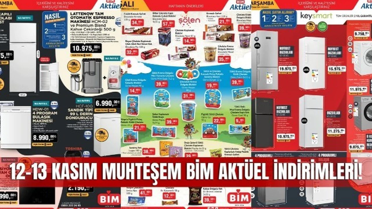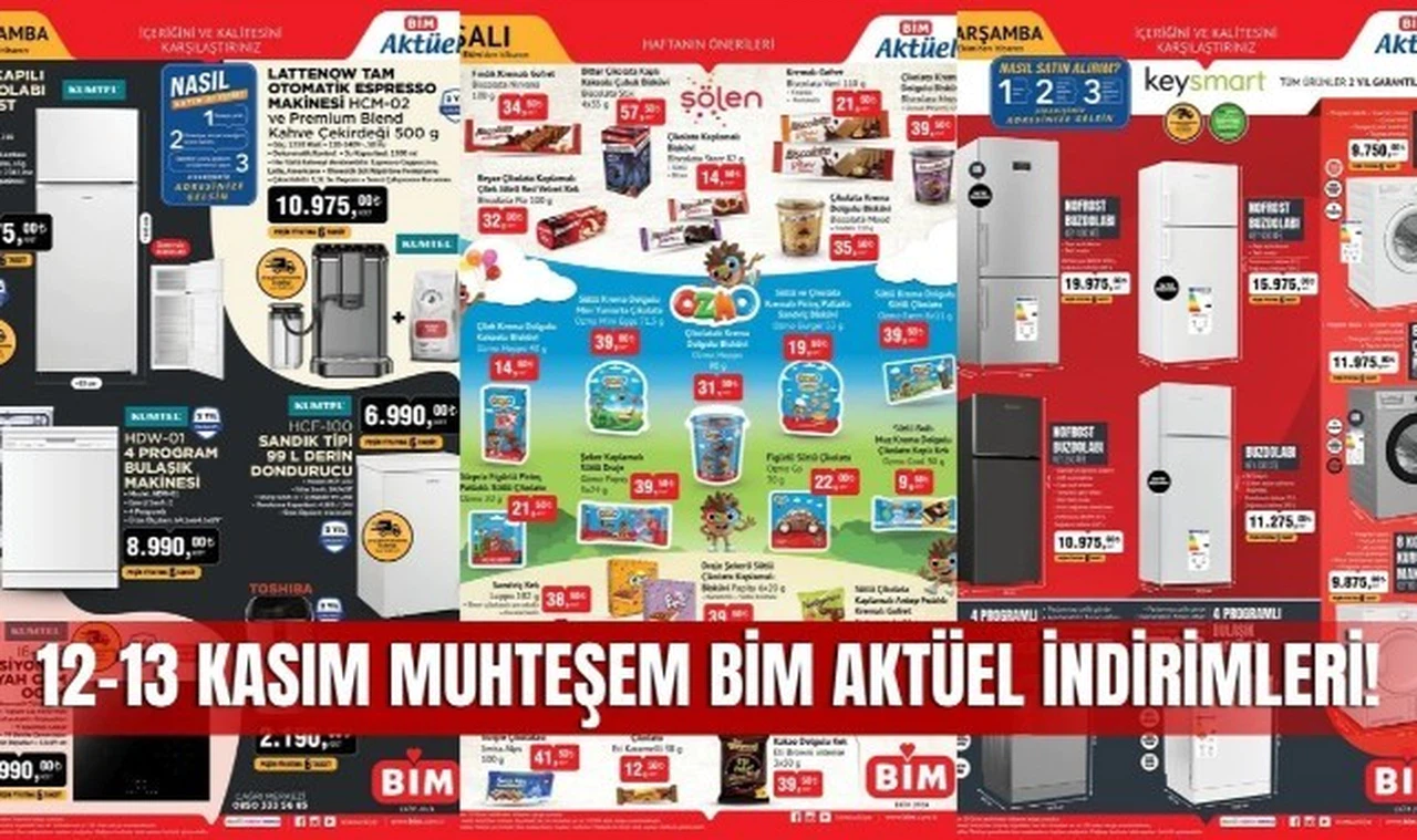BİM'in 12-13 Kasım tarihlerinde geçerli olan indirimli ürün kataloğu tanıtıldı. Kasım ayına özel olarak sunulan bu kampanyada, ev eşyasından kişisel bakıma kadar geniş bir ürün yelpazesi yer alıyor.