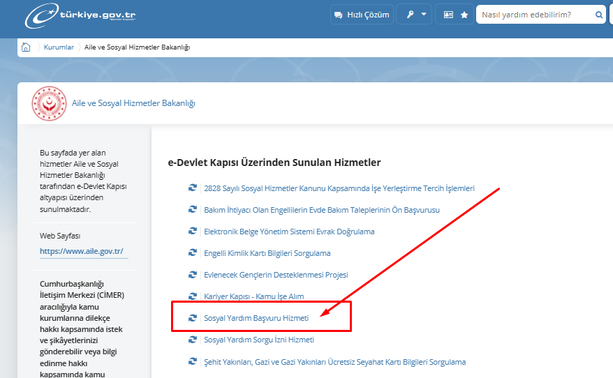 Başvuru Formu: Aile ve Sosyal Hizmetler Bakanlığı’nın sosyal yardım başvuru ekranına gidilir.