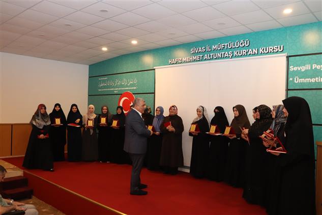 Tören sonunda İl Müftüsü Altunkaya, kursa katılan öğrencilere ve öğretmenlerine hediye ve plaket takdim etti.