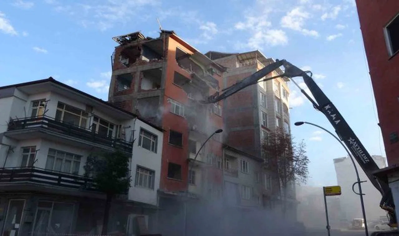 Malatya'da Kahramanmaraş merkezli depremlerde aldığı hasar sonrası yıkım kararı alınan ve yapısı ile konumu nedeniyle yıkımı yaklaşık 18 aydır ötelenen Adem Çavuş Apartmanı'nda yıkım işlemlerine başlandı.