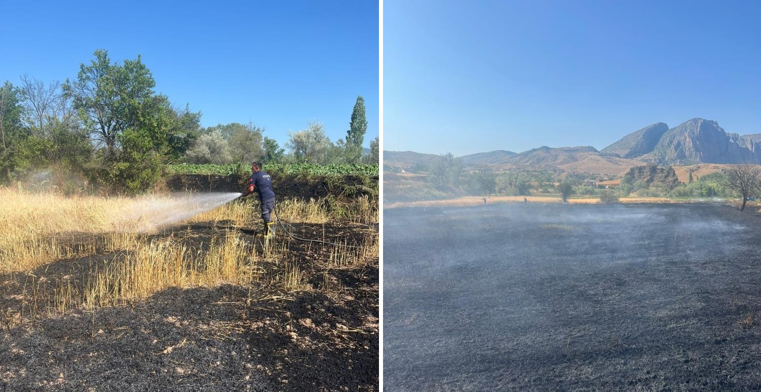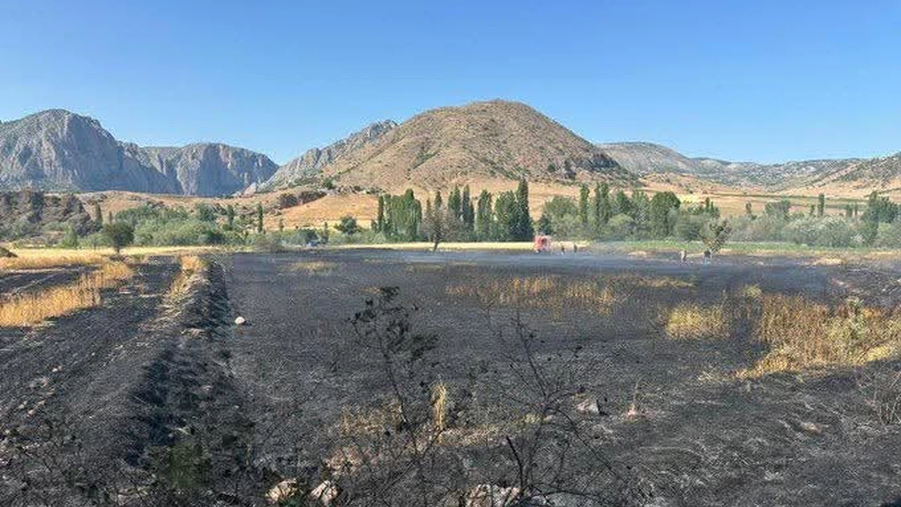 Yozgat'ın Aydıncık ilçesinde tarlada çıkan yangında 20 dönüm ekili alan küle döndü.