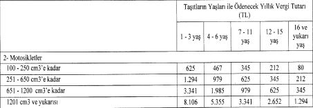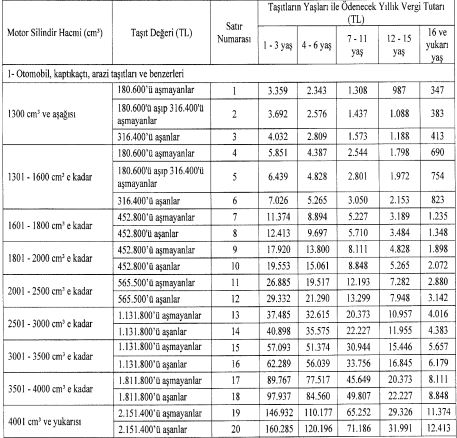 Hazine ve Maliye Bakanlığı'na bağlı Gelir İdaresi Başkanlığı tarafından yapılan Motorlu Taşıtlar Vergisi Genel Tebliği'nde yer alan 2024 yılında ödenecek Motorlu Araç Vergisi (MTV) tarifesi şu şekilde: