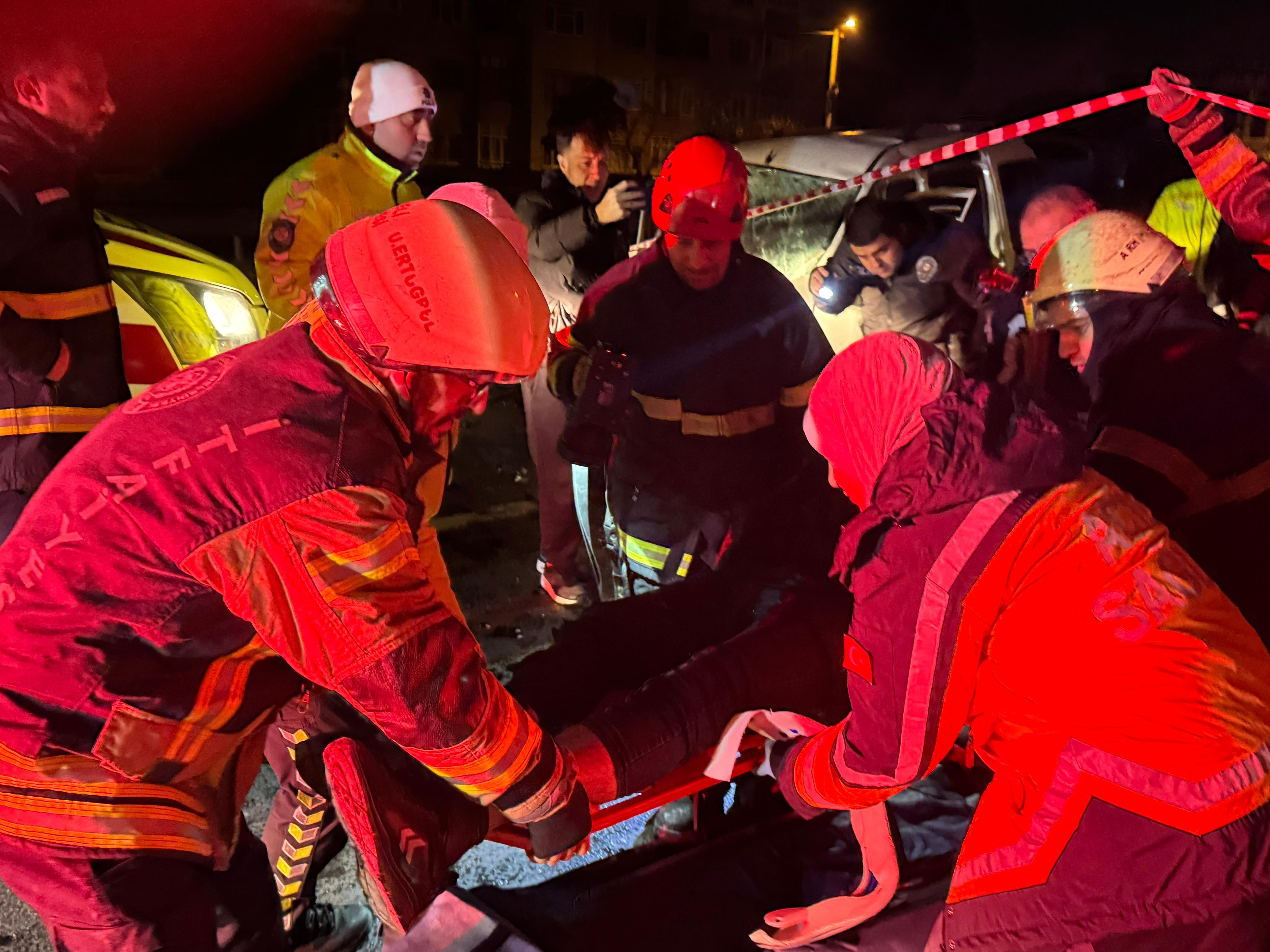 Çarpışmanın şiddetiyle her iki sürücü de yaralanırken, Alkan Dönerkaya araç içinde sıkıştı.
