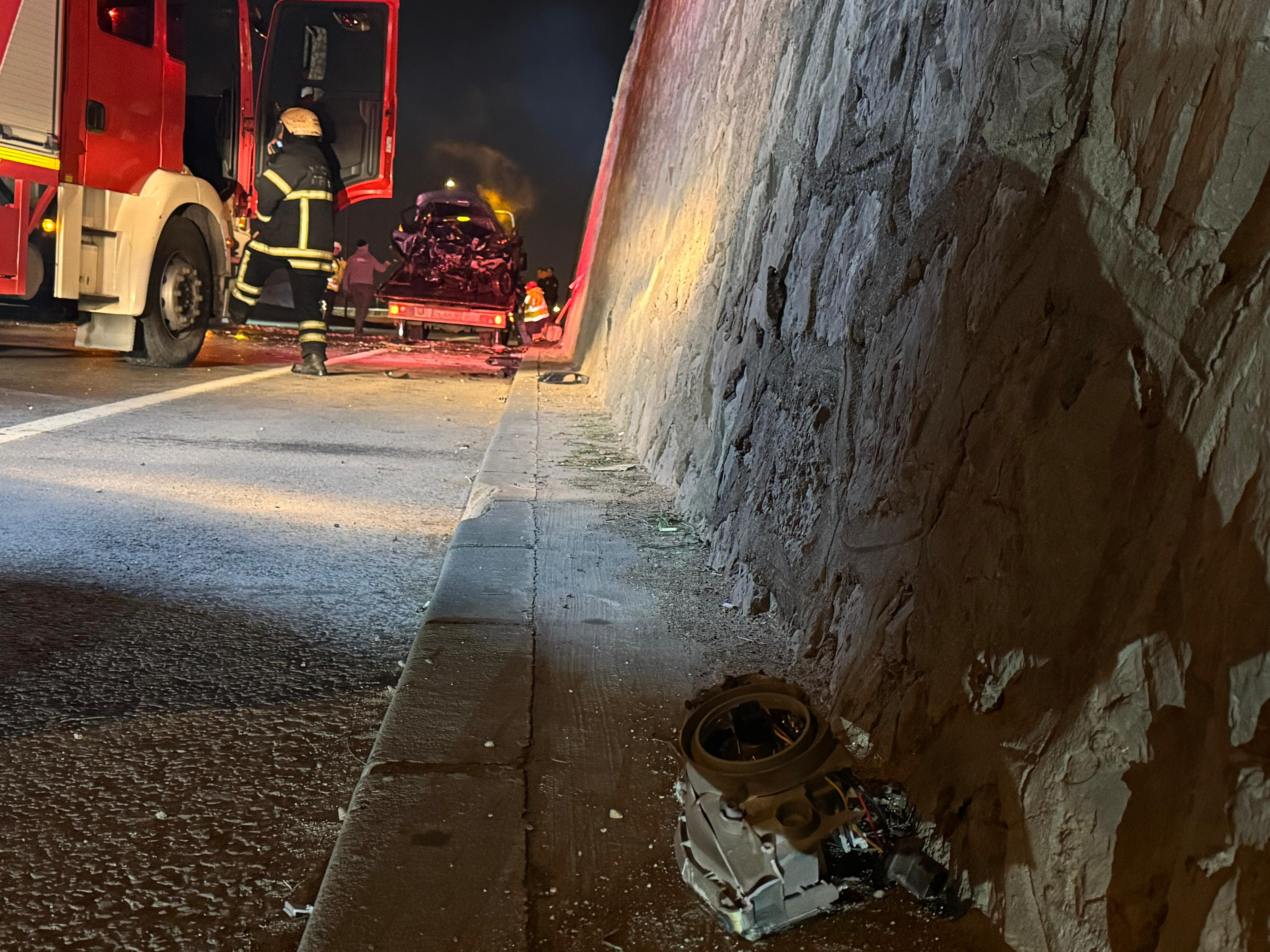 Öte yandan, olay yerinde çarpışmanın şiddetiyle otomobilin parçalarının çevreye savrulduğu görülürken, alkol kutuları da dikkat çekti.