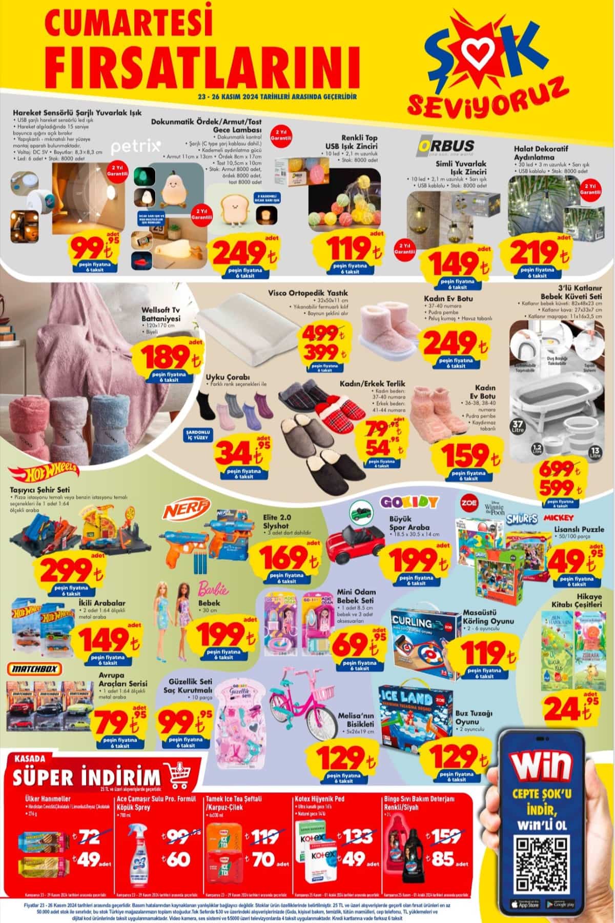 Şok Market, 23-30 Kasım 2024 tarihleri arasında geçerli olacak yeni Hafta Sonu Aktüel Kataloğu ile müşterilerini karşılıyor. Teknolojiden tekstile, dekoratif ürünlerden temel ihtiyaçlara kadar birçok kategoride indirimli ürünlerle hazırlanan katalog, Hem Şok'ta Hem Cepte Şok'ta uygun fiyatlarla dikkat çekiyor.