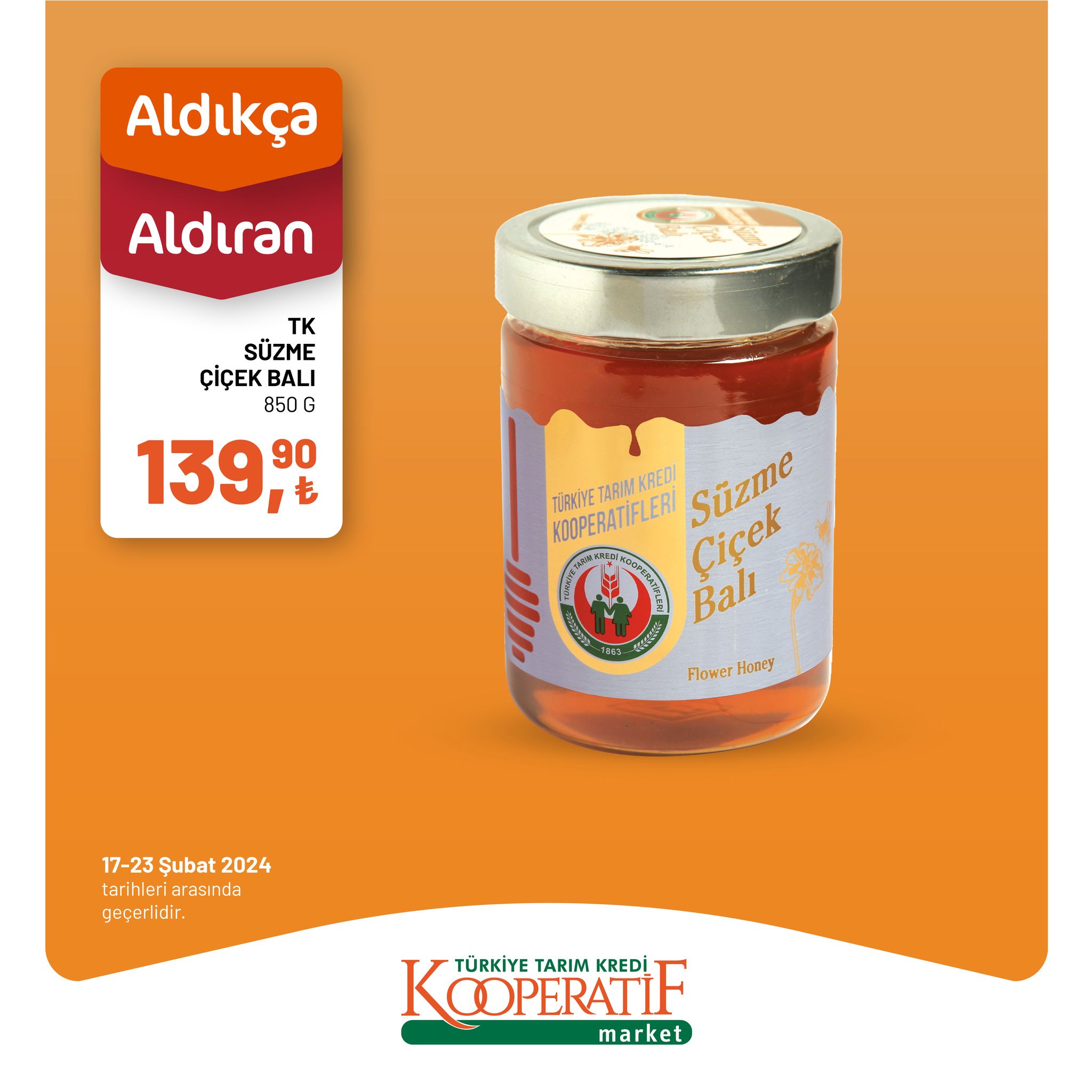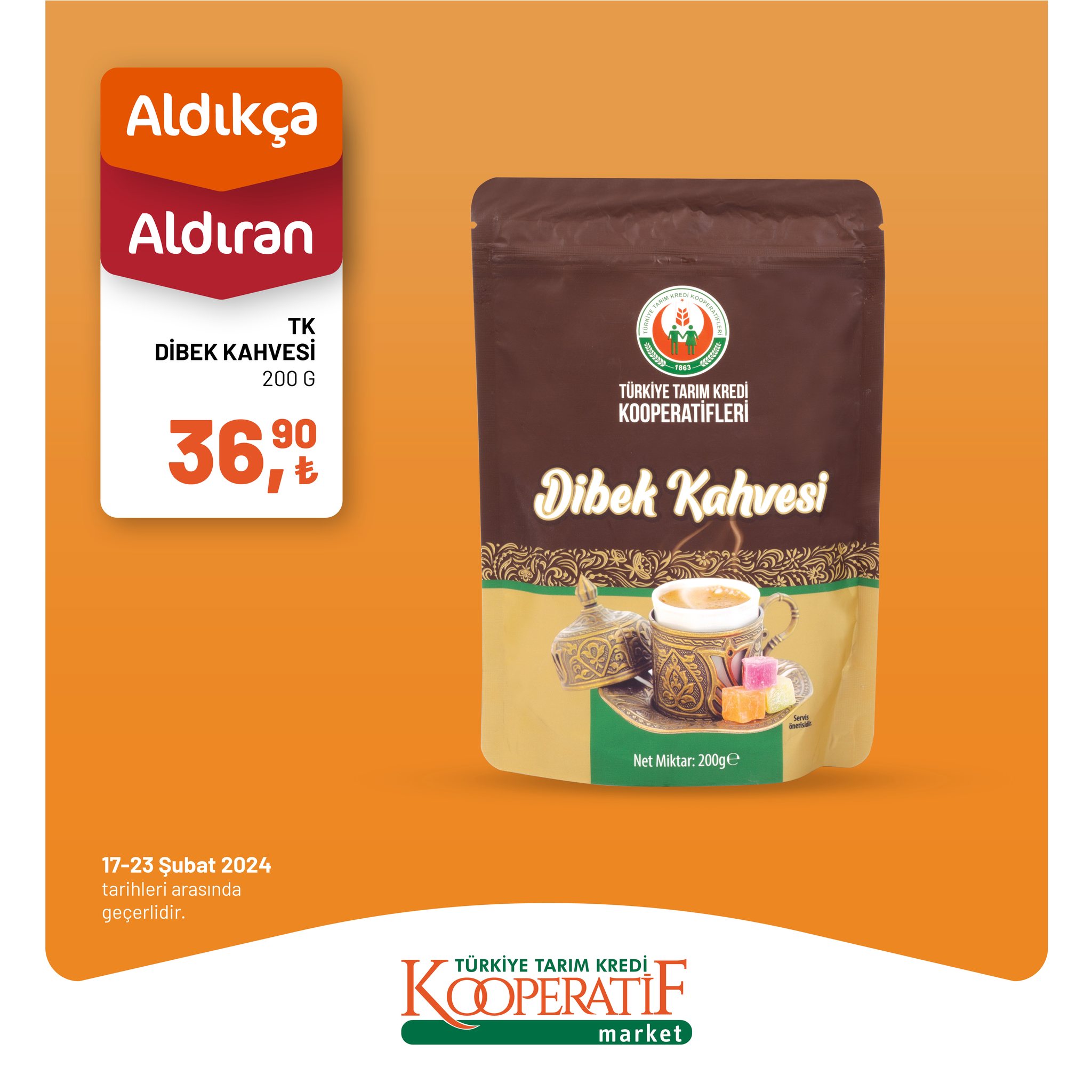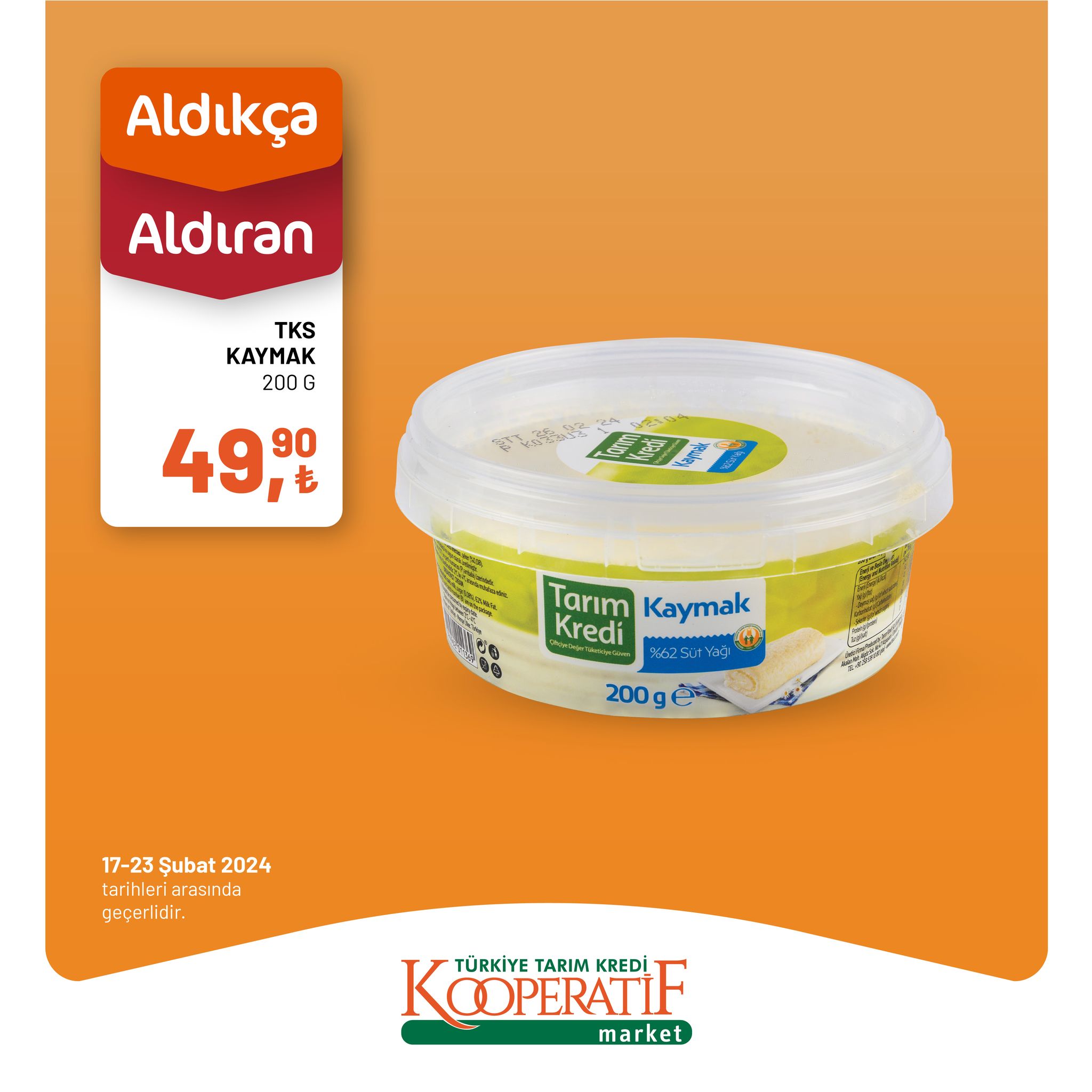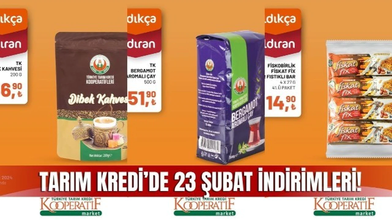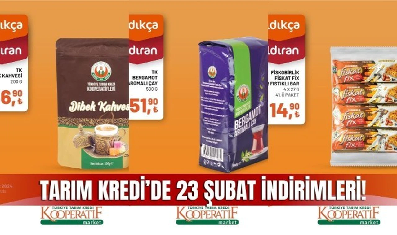 Her hafta olduğu gibi bu hafta da Tarım Kredi Kooperatif Market, müşterilerine cazip indirimler sunmaya devam ediyor. 17 - 23 Şubat tarihleri arasında geçerli olacak olan indirimlerle birlikte, alışveriş tutarınızı daha da hesaplı hale getirecek birçok üründe büyük avantajlar sizleri bekliyor.