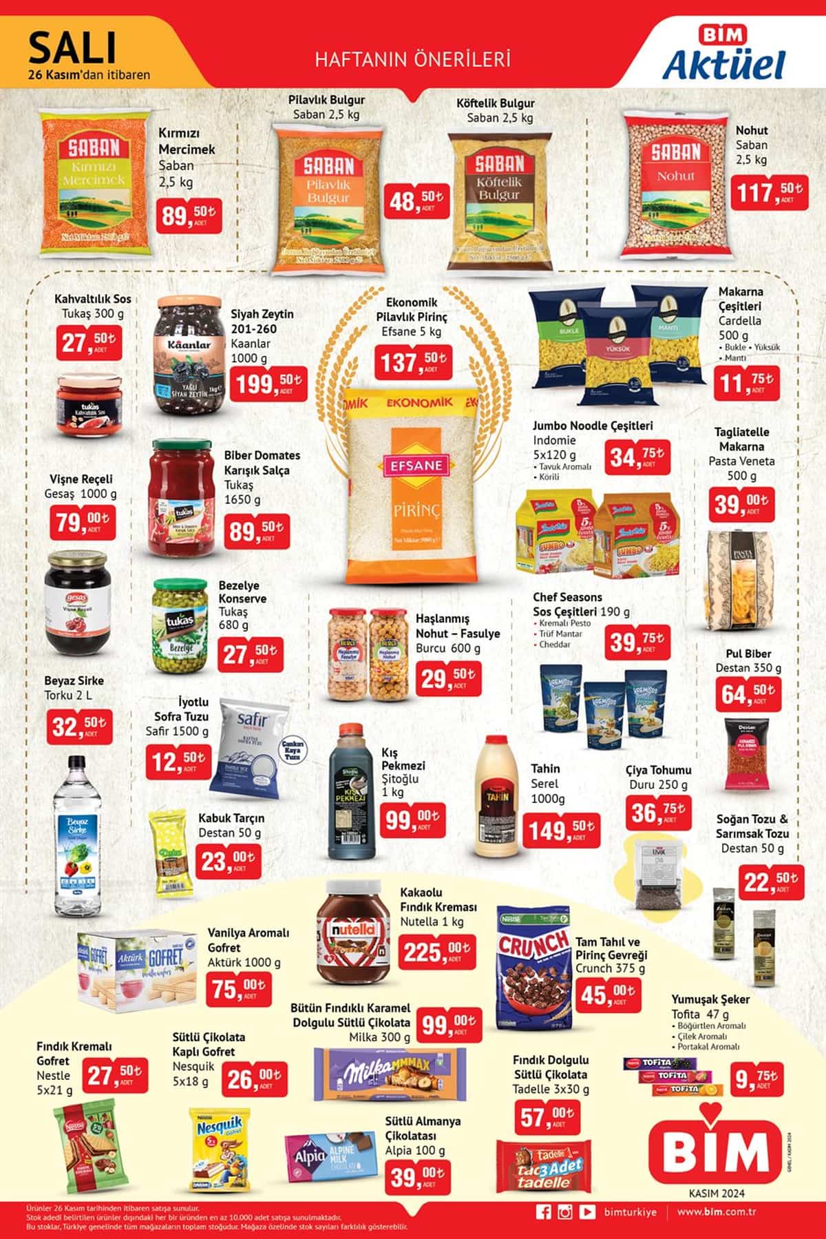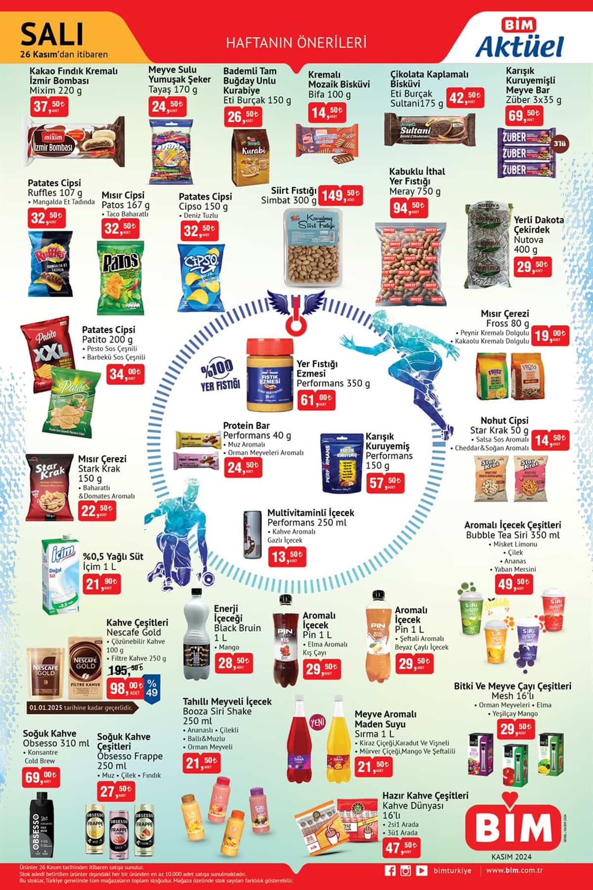 BİM, 26 Kasım 2024 Salı tarihinden itibaren geçerli olacak yeni aktüel ürünler kataloğunu müşterilerine sundu. "Haftanın Önerileri" etiketiyle duyurulan kampanyada, temel ihtiyaçlardan kişisel bakım ürünlerine, gıda ürünlerinden temizlik malzemelerine kadar geniş bir yelpazede indirim fırsatları dikkat çekiyor. Kampanya, 3 Aralık 2024 Salı gününe kadar devam edecek. İşte detaylar: