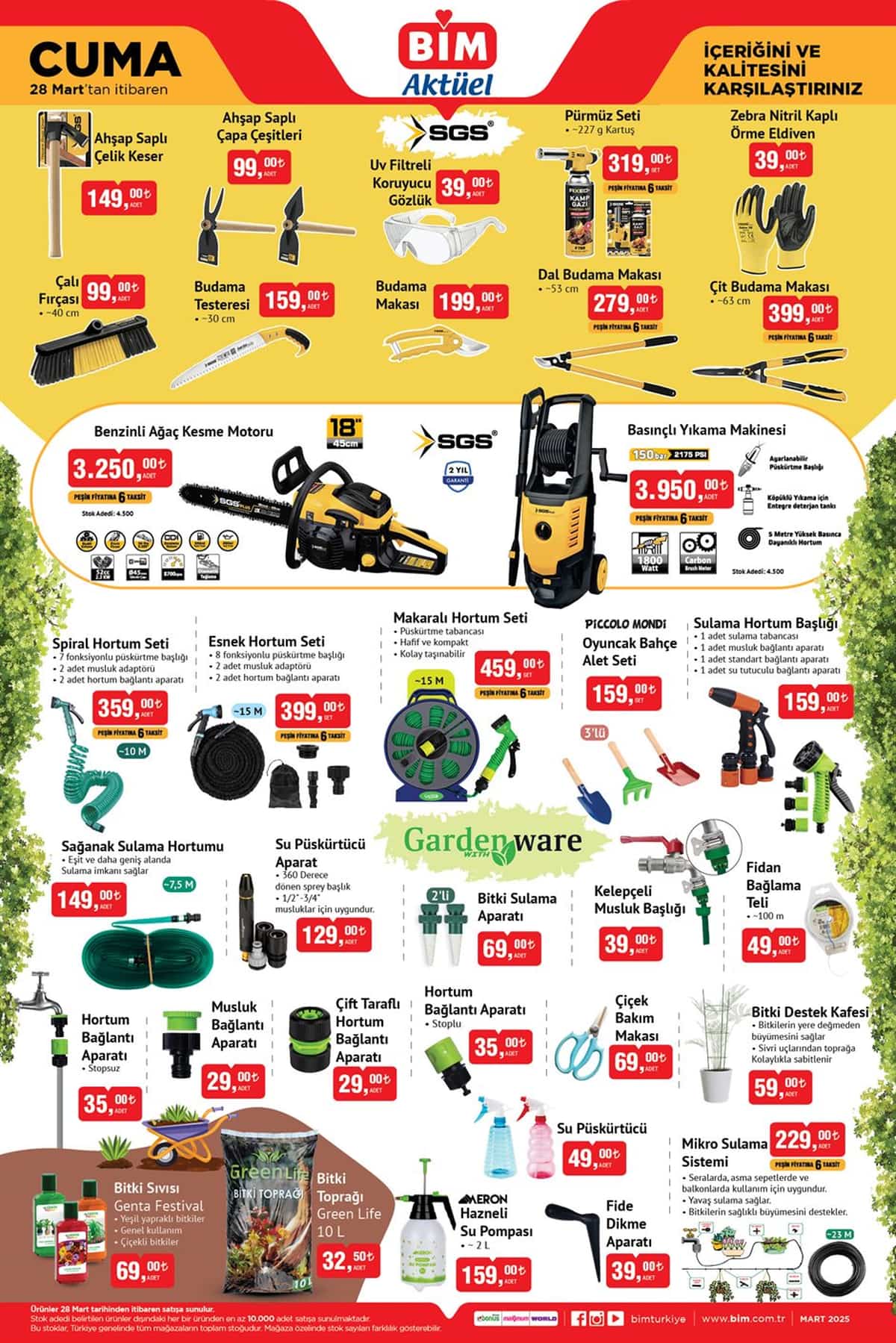 Bim Market, 28 Mart 2025 Cuma günü başlayacak yeni kampanyasıyla, müşterilerine birbirinden cazip fırsatlar sunuyor. 28 Mart Bim Kataloğu, 4 Nisan 2025 tarihine kadar geçerli olacak ve bu hafta Teknoloji Ürünleri, Kumandalı Araçlar, Bahçe Düzenleyiciler, Çok Amaçlı Dolaplar, Dekoratif Ürünler, Züccaciye, Mutfak Eşyaları ve Eğitici Oyuncaklar gibi birçok farklı kategori ile dikkat çekiyor.