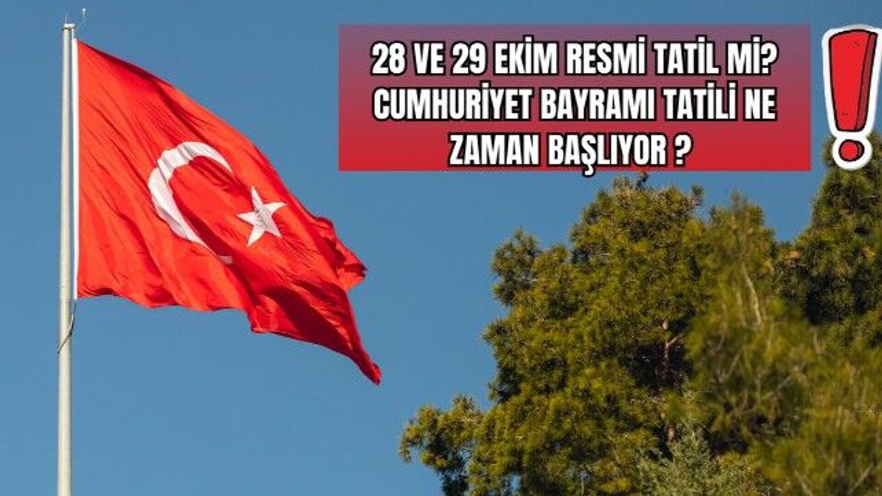Cumhuriyet Bayramı'nın yaklaşmasıyla birlikte vatandaşlar 28 ve 29 Ekim'deki resmi tatil düzenlemelerini merak etmeye başladı. Her yıl olduğu gibi, bu yıl da 29 Ekim Cumhuriyet Bayramı coşkuyla kutlanacak. Milli Eğitim Bakanlığı (MEB) takvimine göre, Cumhuriyet Bayramı tatili 28 Ekim saat 13.00'te başlayacak ve 1,5 gün sürecek. Okullar, kamu kurumları ve diğer resmi daireler bu tarihlerde tatil olacak.