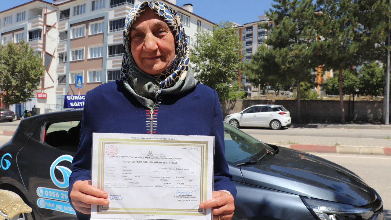Tokat'ta yaşayan emekli öğretmen Sevim Buray, 43 yıldır evli olduğu eşi kalp rahatsızlığından dolayı araç kullanmakta zorluk yaşayınca ehliyet alabilmek için kolları sıvadı. Ehliyet almak için kursa yazılan Buray azmiyle dikkatleri üzerine çekerken, ilerleyen yaşına rağmen başarılı olması örnek teşkil etti. Eşini hastaneye götürmek ve hobi bahçelerinde zaman geçirmek için araç kullanacağını belirten Buray, başarmanın mutluluğunu yaşadığını söyledi.