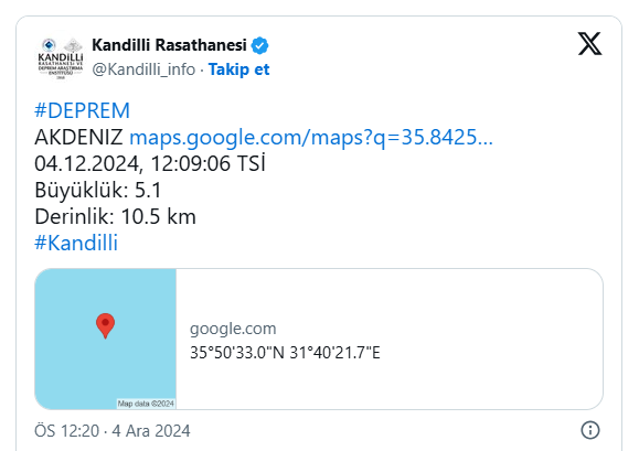 Kandilli Rasathanesi: Deprem 5.1 Büyüklüğünde