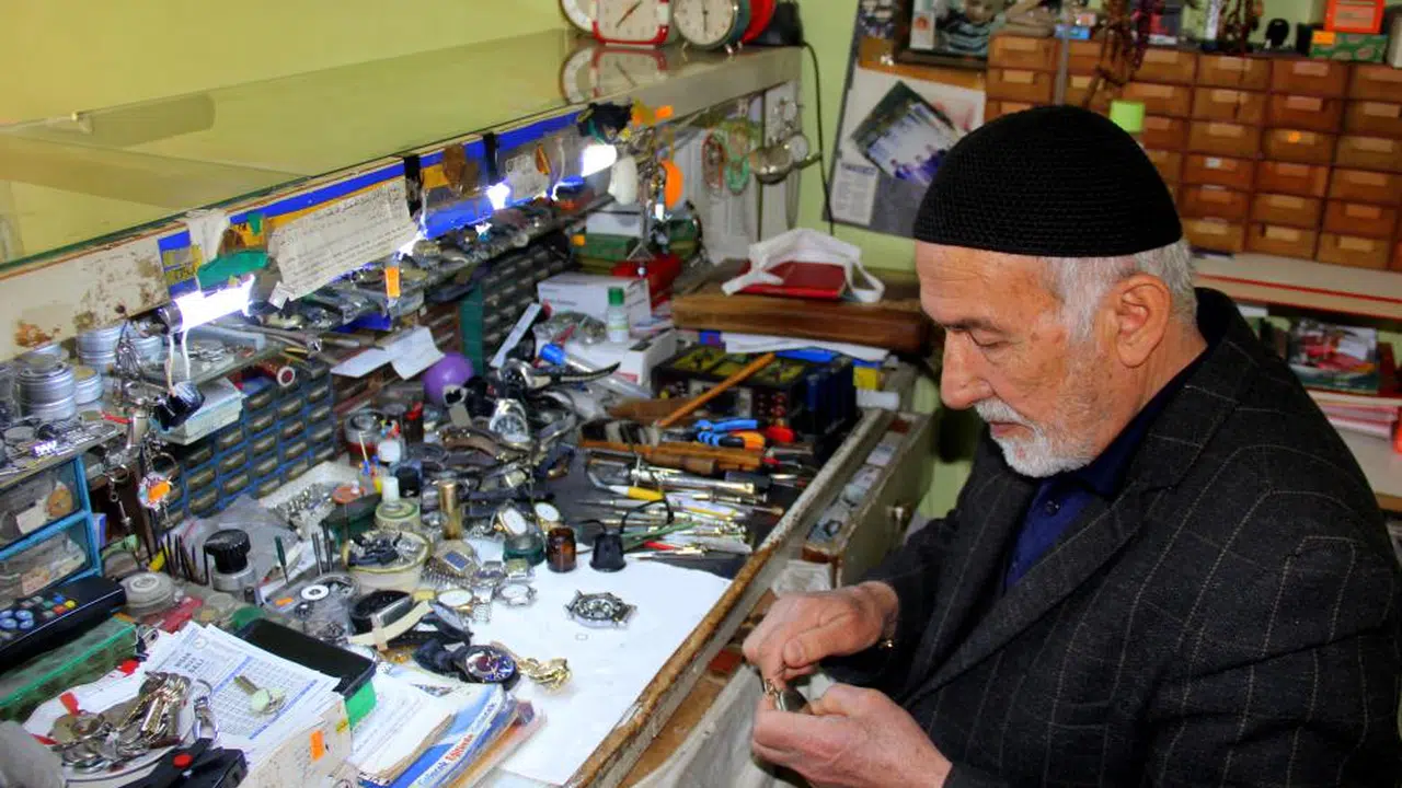 Hayatının 58 yılını saatler arasında geçiren tamirci Sebahattin Tanoğlu, yarım asırdır 20 metrekarelik küçük bir saatçi dükkânında zanaatını icra ediyor.