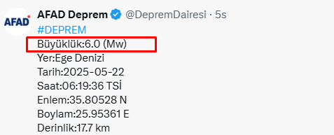 Ege Denizi açıklarında meydana gelen 6,0 büyüklüğündeki deprem, bölge halkında endişeye yol açtı. AFAD tarafından yapılan açıklamaya göre, sarsıntı yerin 17,7 kilometre derinliğinde gerçekleşti. Deprem, geniş bir alanda hissedilirken, kısa süreli paniğe neden oldu.