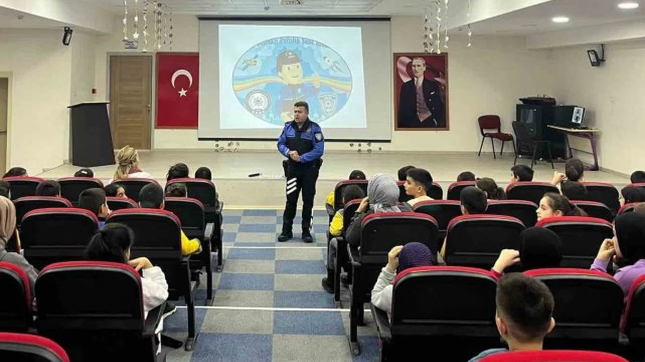 Şehit Ahmet Aytekin Ortaokulu, Mehmet Akif Ersoy İlkokulu öğrencileri olmak üzere toplamda 735 öğrenciyle buluşan polis ekipleri öğrencilere '112 Acil Çağrı Hattı, trafik güvenliği, güvenli internet kullanımı ve genel güvenlik' konularında bilgilendirme yaparak Emniyet Müdürlüğüne ait broşür ve etiket dağıtımı yaptı.