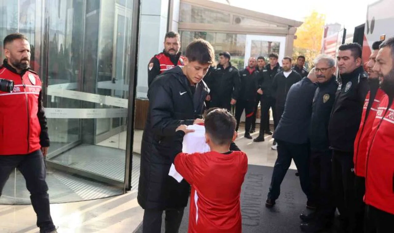 Kayserili taraftarlar, millilerin konakladığı otelin önüne gelerek Karadağ seyahati öncesi ay-yıldızlı futbolculara sevgi gösterisinde bulundu.