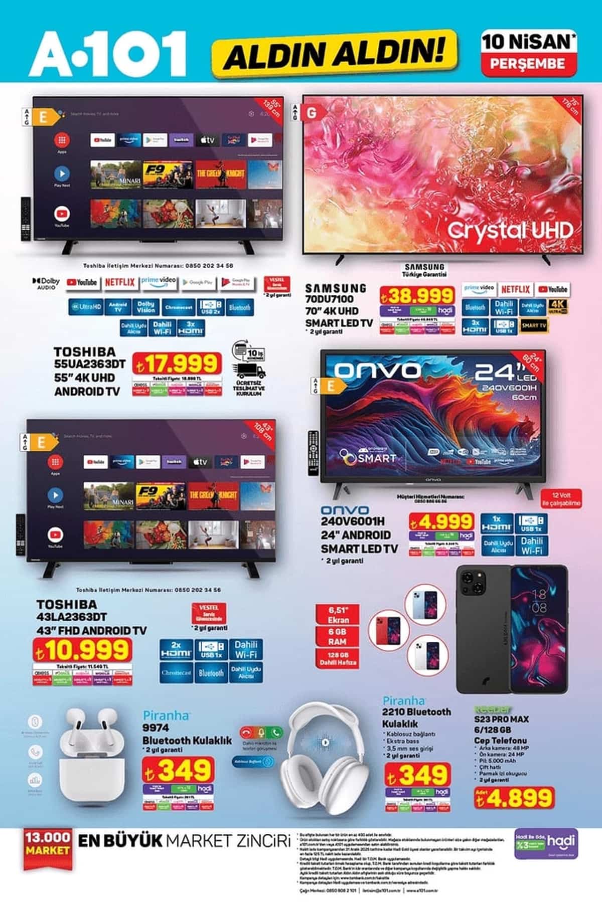 A101 Market, 10 Nisan 2025 tarihli Aldın Aldın kampanyasıyla teknoloji, beyaz eşya, ev gereçleri ve tekstil ürünlerinde dev fırsatlar sunuyor. Türkiye genelindeki A101 mağazalarında, A101 Online ve A101 Kapıda uygulaması üzerinden 17 Nisan 2025’e kadar geçerli olacak kampanya kapsamında yüzlerce ürün indirimli fiyatlarla satışa sunulacak.
