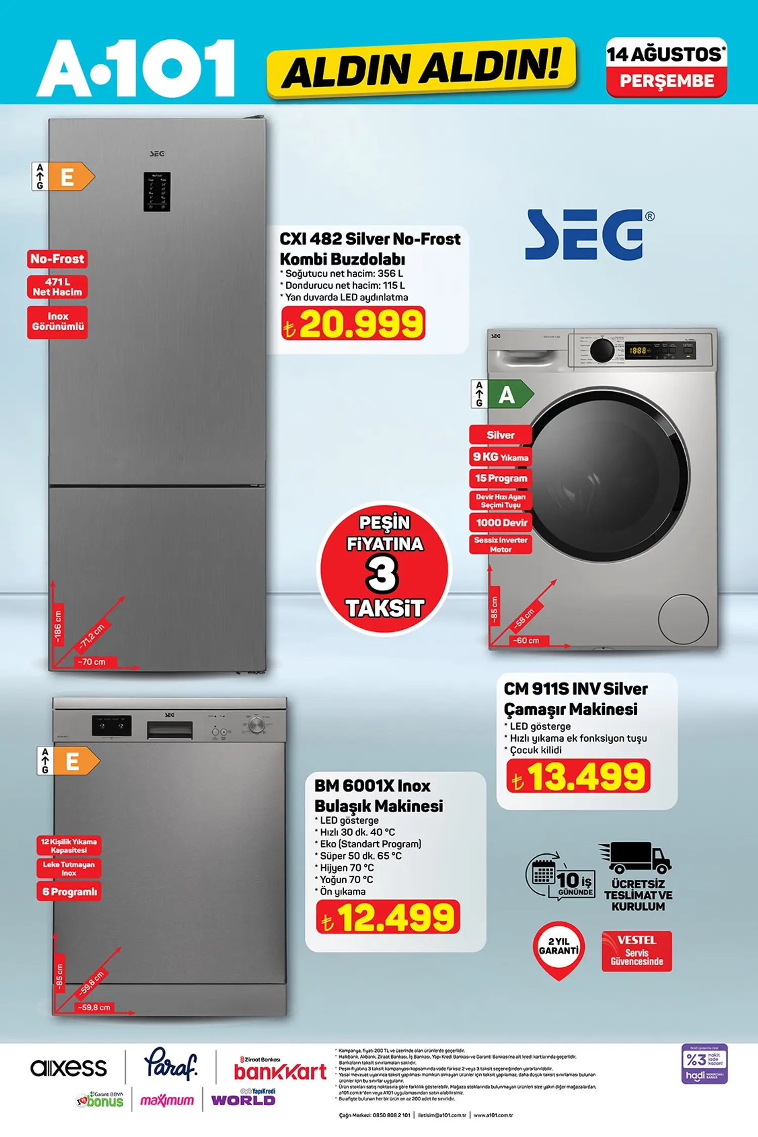 Sivas A101 marketlerinde bu hafta SEG marka beyaz eşyalar öne çıkıyor: