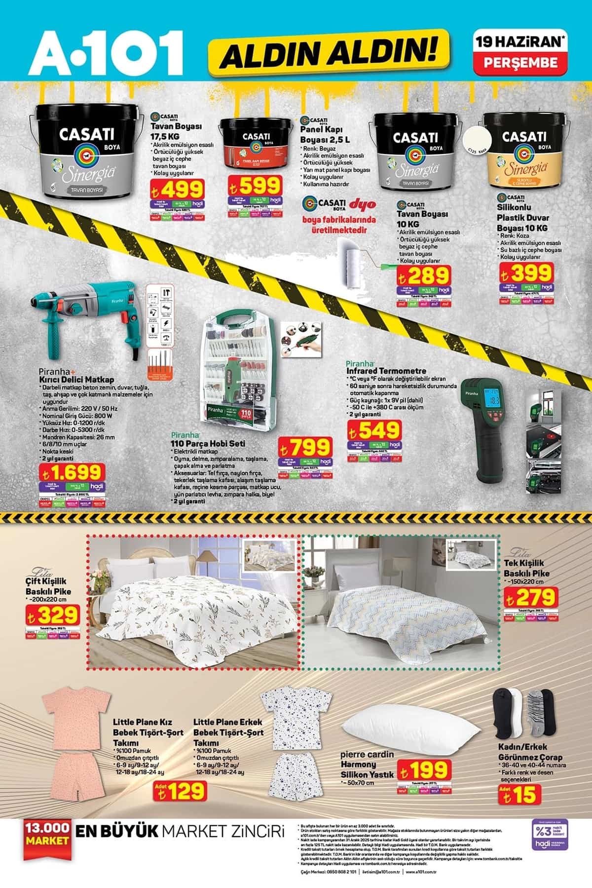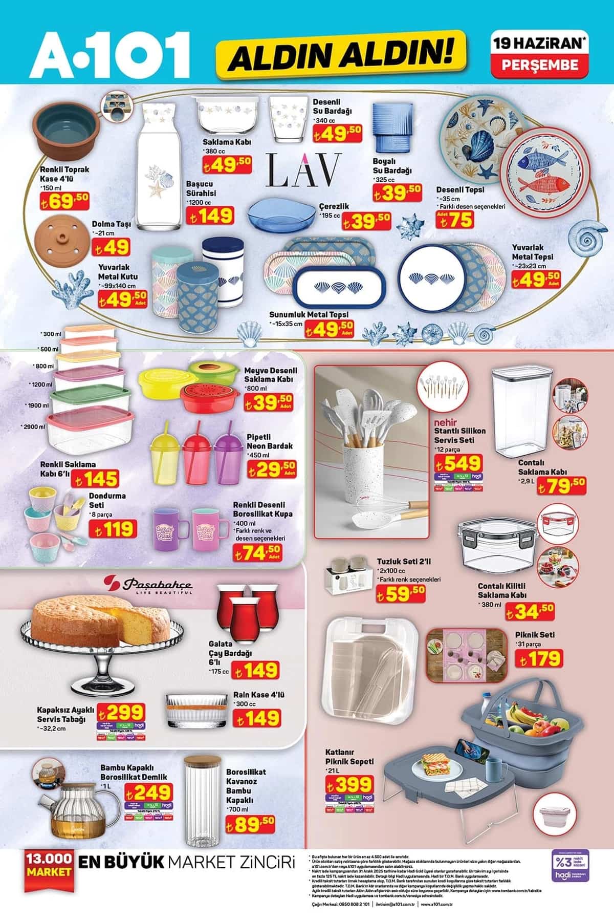 19 Haziran 2025 A101 Aktüel Ürünler Kataloğu’ndaki tüm fırsatlar, 26 Haziran 2025 tarihine kadar, A101 market şubelerinde, A101 Online, A101 Kapıda ve A101 Hadi Veresiye seçenekleriyle geçerli olacak.