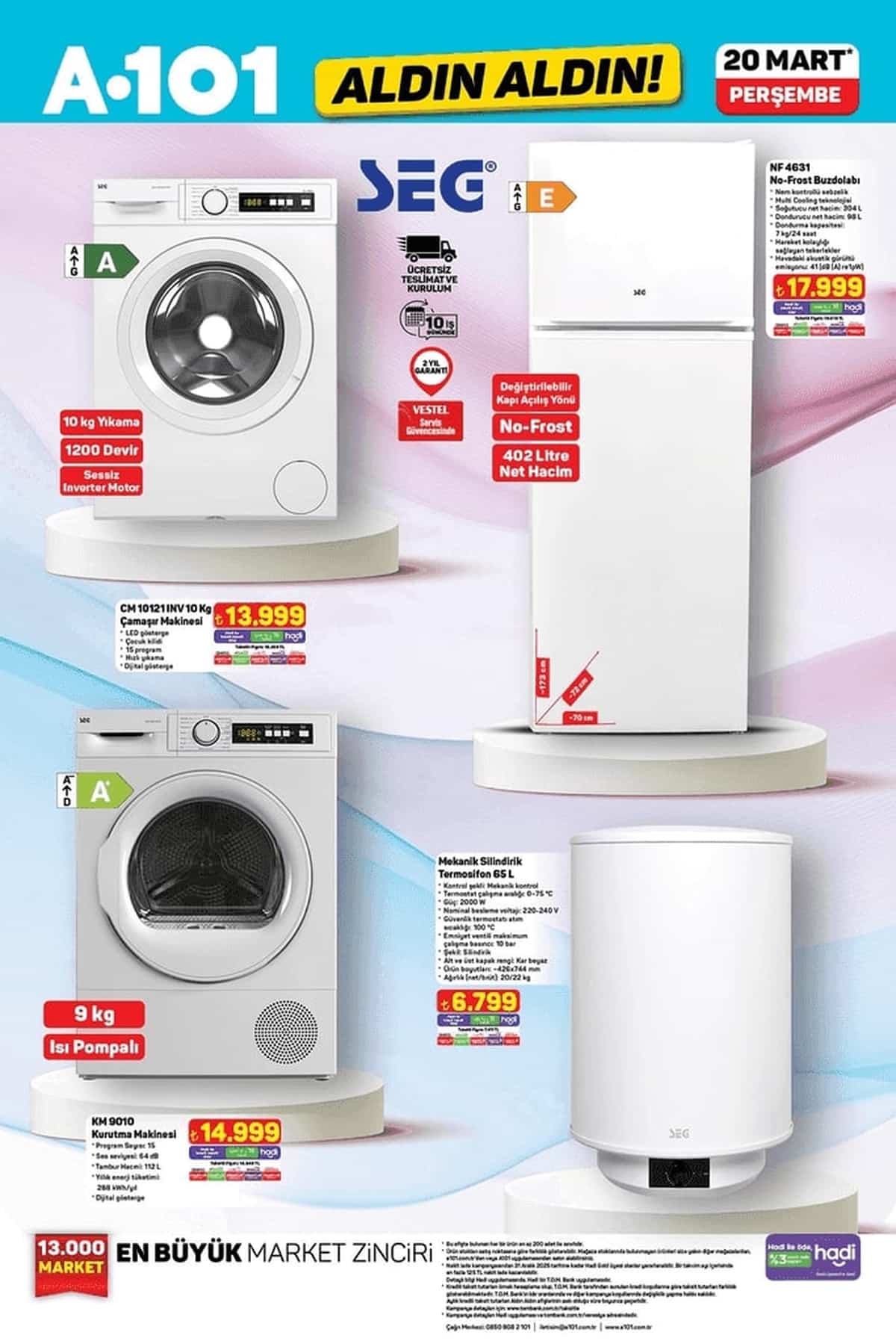 Ev ihtiyaçları için büyük fırsatlar sunan A101, beyaz eşya kategorisinde de iddialı: