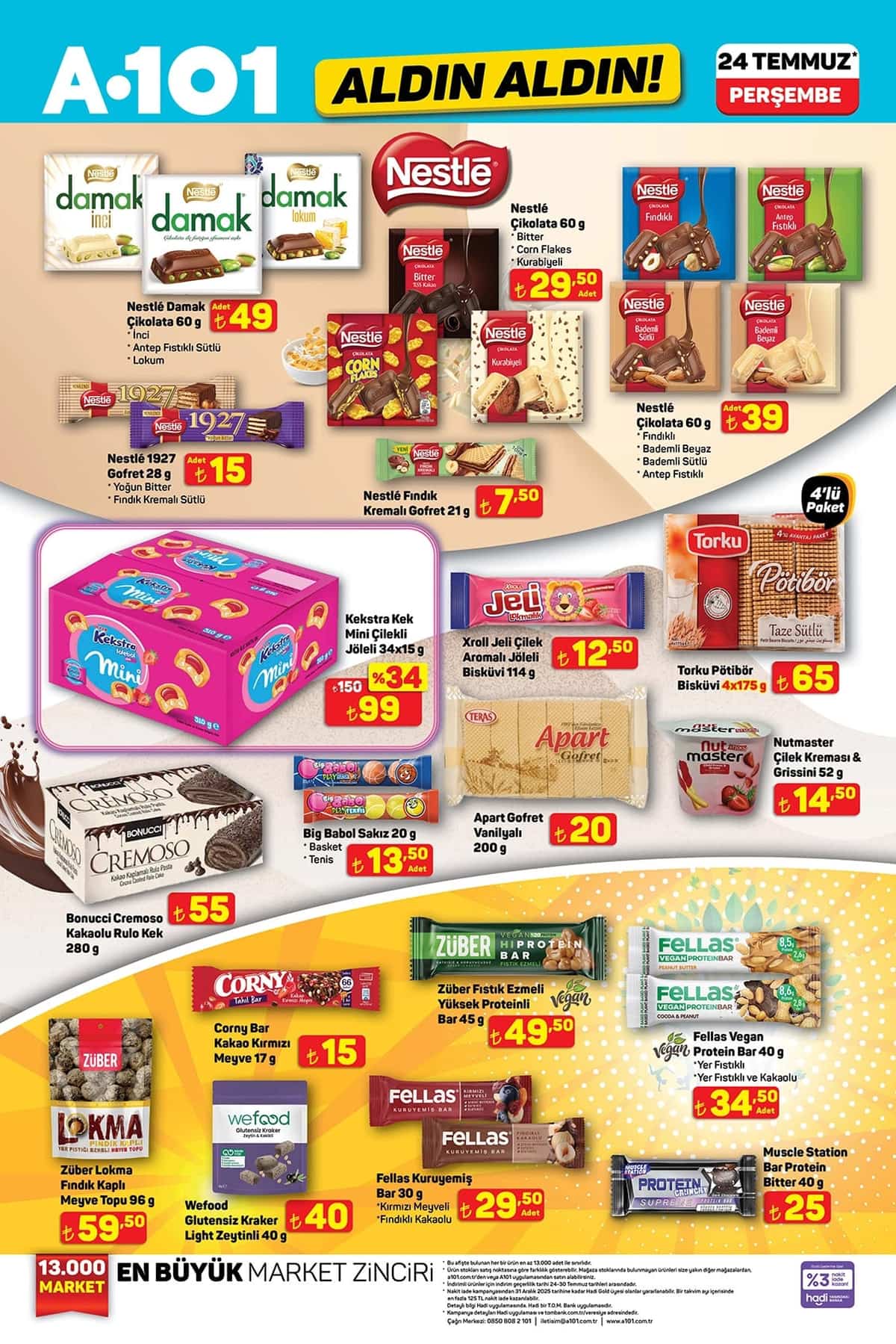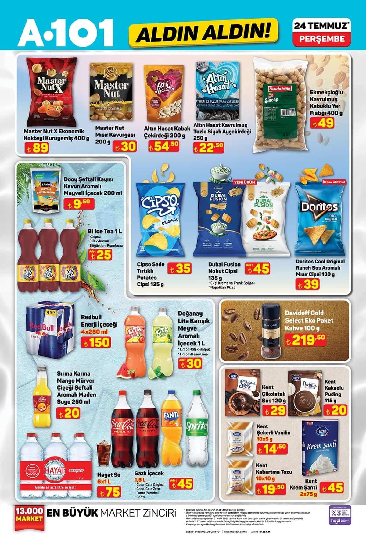 A101’in 24 Temmuz 2025 kataloğunda yer alan tüm aktüel ürünler, 31 Temmuz 2025 tarihine kadar A101 mağazalarında ve dijital platformlarında tüketicilerin beğenisine sunulacak. Kampanyalardan yararlanmak için A101 Kapıda ve A101 Online uygulamalarını da kullanabilirsiniz.