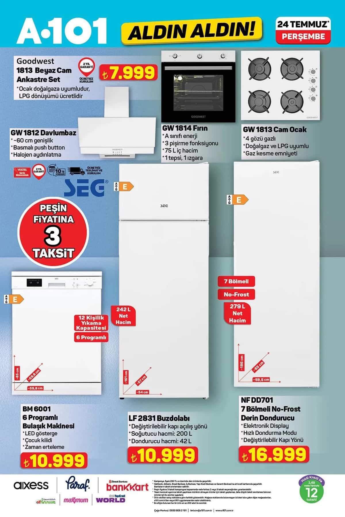 A101 kataloğunda beyaz eşya kategorisinde SEG ve Goodwest markalı ürünler dikkat çekiyor: