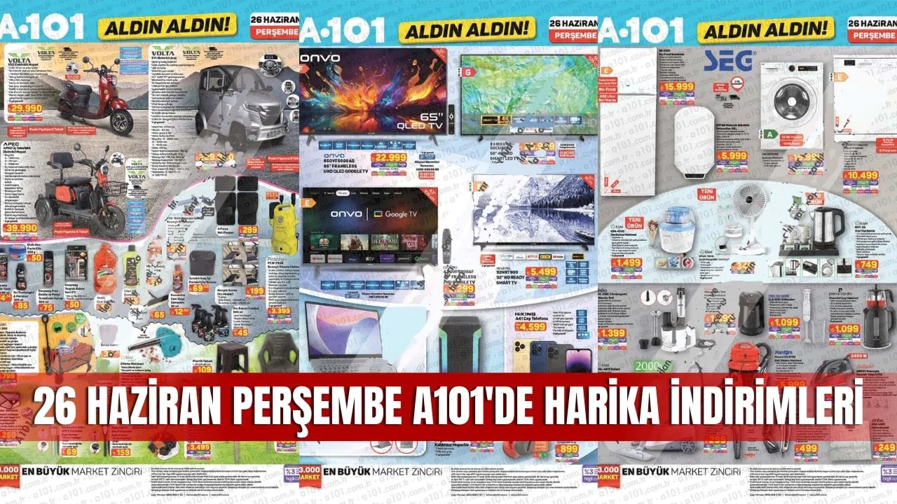A101 Market, 26 Haziran 2025 Perşembe günü itibariyle Sivas’taki tüm şubelerinde geçerli olacak yeni Aldın Aldın kampanyası ile vatandaşların yüzünü güldürecek. Elektronikten beyaz eşyaya, elektrikli ev aletlerinden spor ve giyim ürünlerine kadar birçok kategoride dev indirimlerin yer aldığı A101 Aktüel 26 Haziran 2025 kataloğu, yine büyük ilgi göreceğe benziyor.