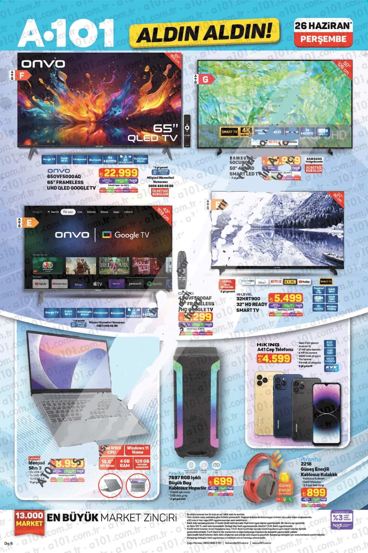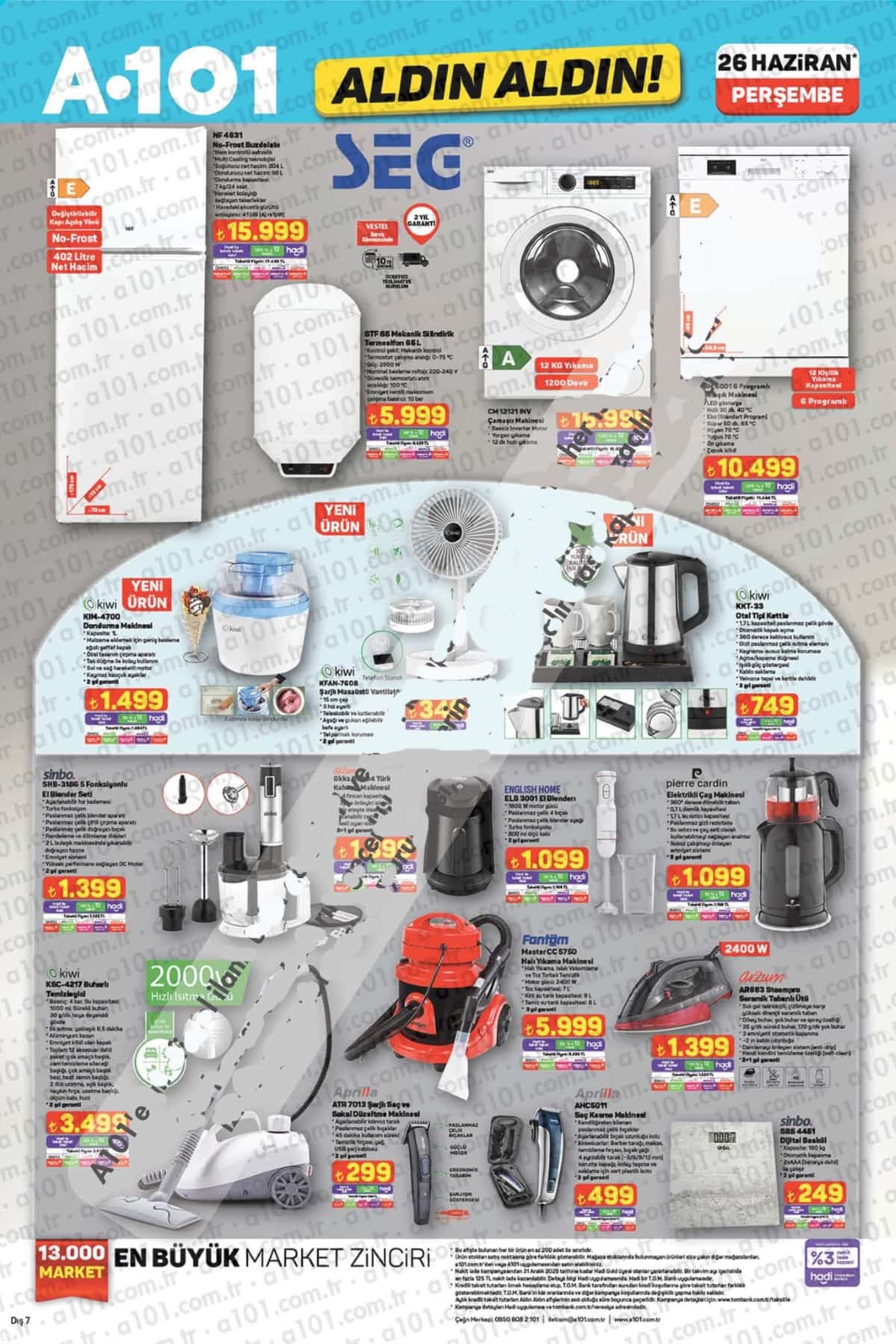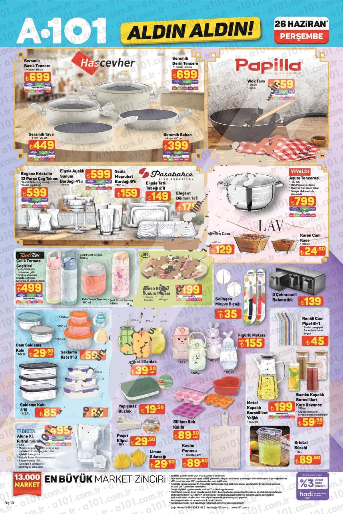 A101 Aktüel 26 Haziran 2025 kataloğunda yer alan tüm bu ürünler, 3 Temmuz 2025 tarihine kadar stoklarla sınırlı olarak satışta olacak. Kampanyalardan haberdar olmak ve daha fazlası için bizi bizimsivas.com.tr adresinden takip etmeyi unutmayın!