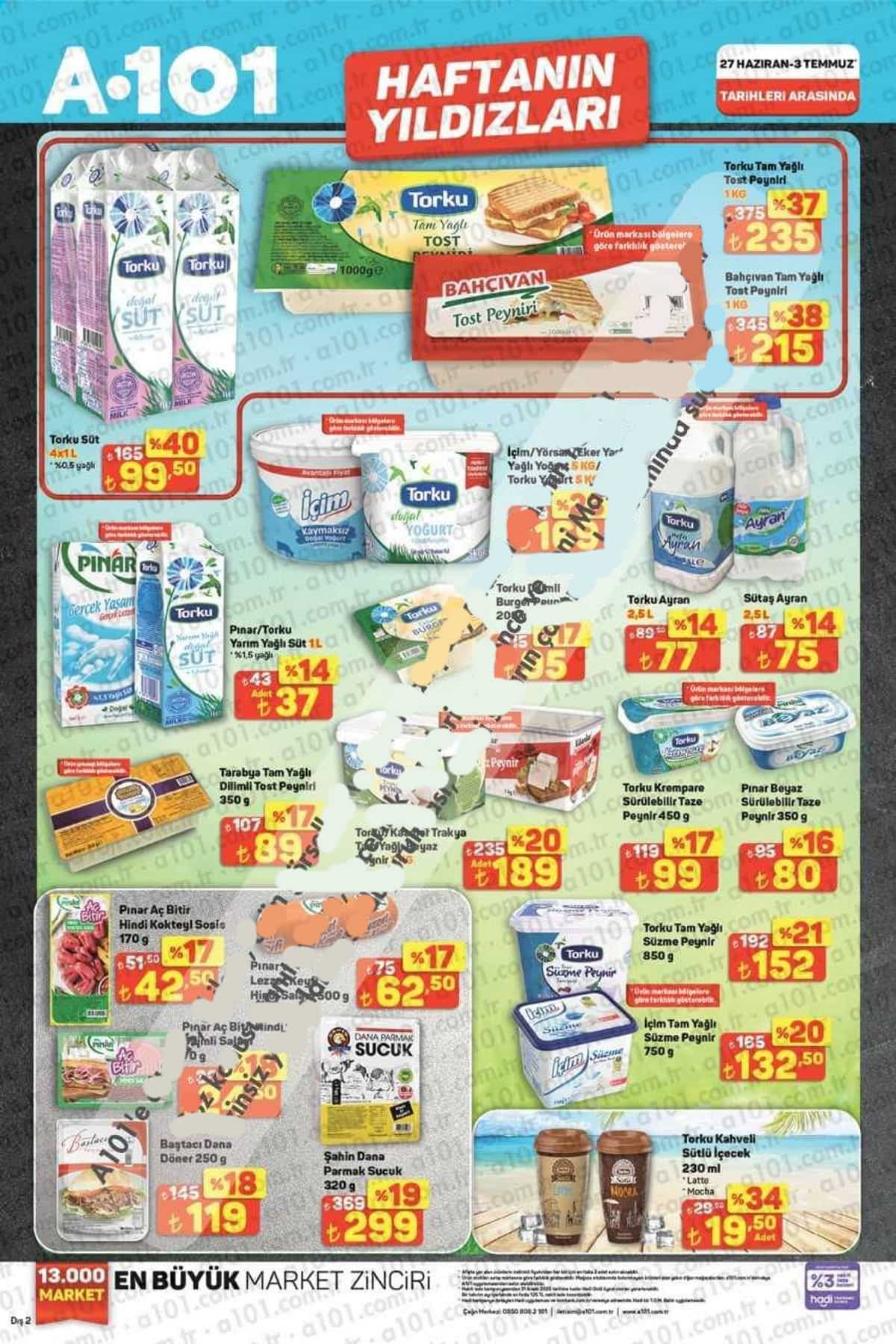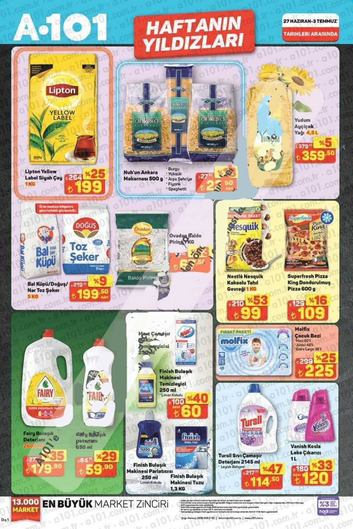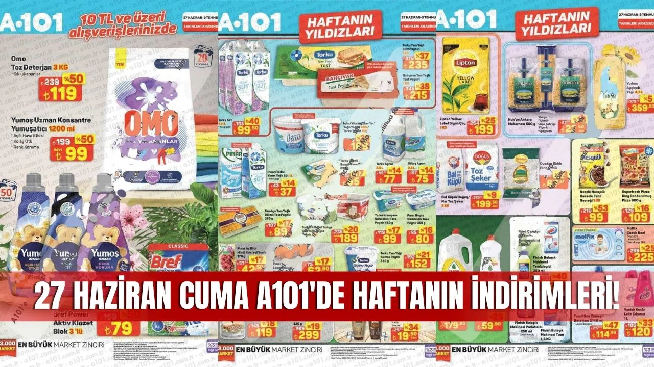 A101 Market, 27 Haziran 2025 Cuma gününden itibaren geçerli olacak yeni aktüel kataloğunu yayınladı. Hafta sonuna özel fırsatlarla dolu A101 Aktüel Kataloğu, temel ihtiyaç ürünlerinde sunduğu büyük indirimlerle dikkat çekiyor. "Haftanın Yıldızları", "Bitmeden Al" ve "A101 Hadi" etiketli kampanyalı ürünler, hem mağazalarda hem de A101 Kapıda, A101 Online ve A101 Hadi Veresiye alışveriş platformlarında müşterilerle buluşuyor.