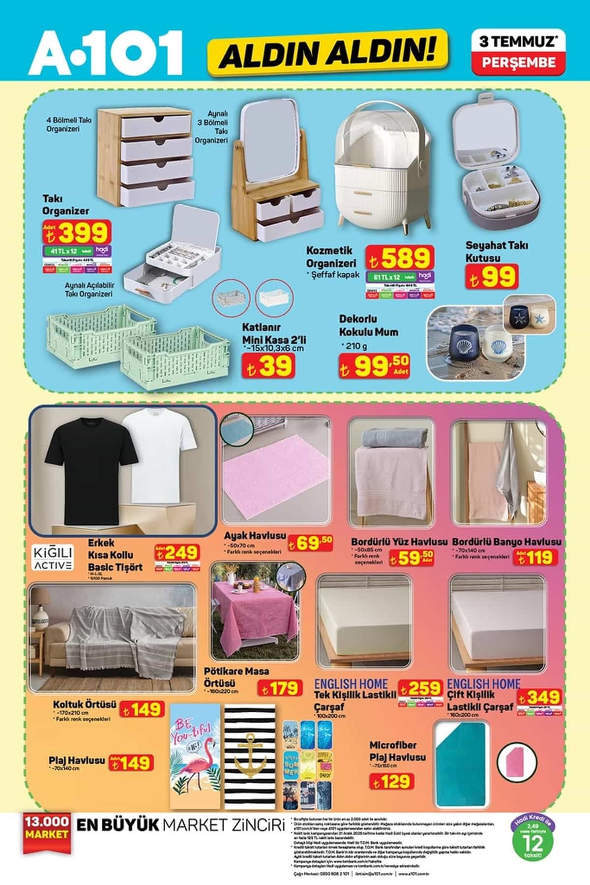 A101 Market, 3 Temmuz 2025 Perşembe gününden itibaren geçerli olacak “Aldın Aldın” kampanyası kapsamında yine dopdolu bir aktüel katalogla Sivaslıların karşısına çıkıyor. Teknolojiden beyaz eşyaya, elektrikli ev aletlerinden kamp malzemelerine kadar onlarca kategoride büyük indirimler sizleri bekliyor.