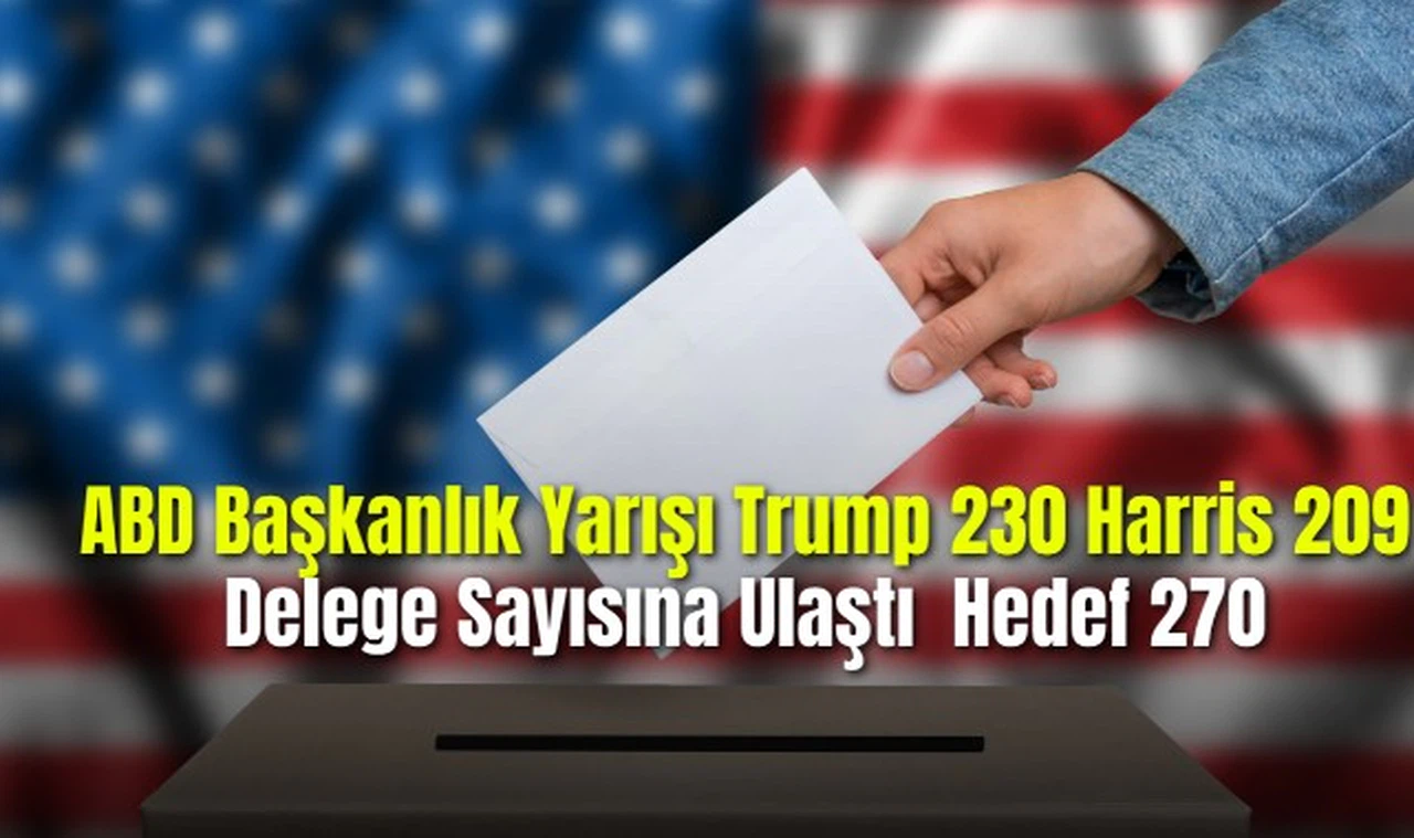 538 delegenin 270"ini kazanan adayın ABD başkanı olacağı seçimlerde Cumhuriyetçi Parti"nin adayı Donald Trump 230, Demokrat Parti"nin adayı Kamala Harris ise 209 delege sayısına ulaştı. Oy sayım işlemleri devam ediyor.