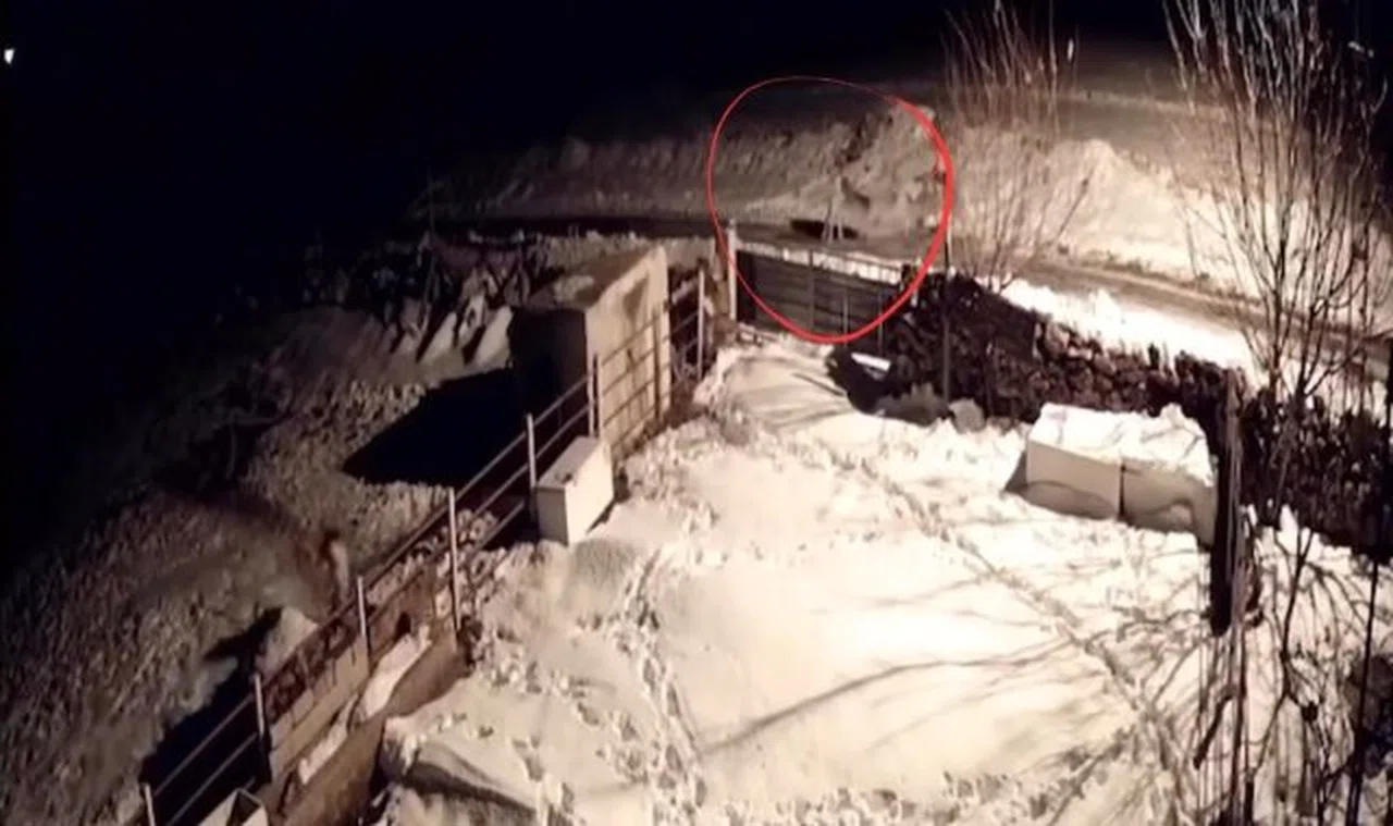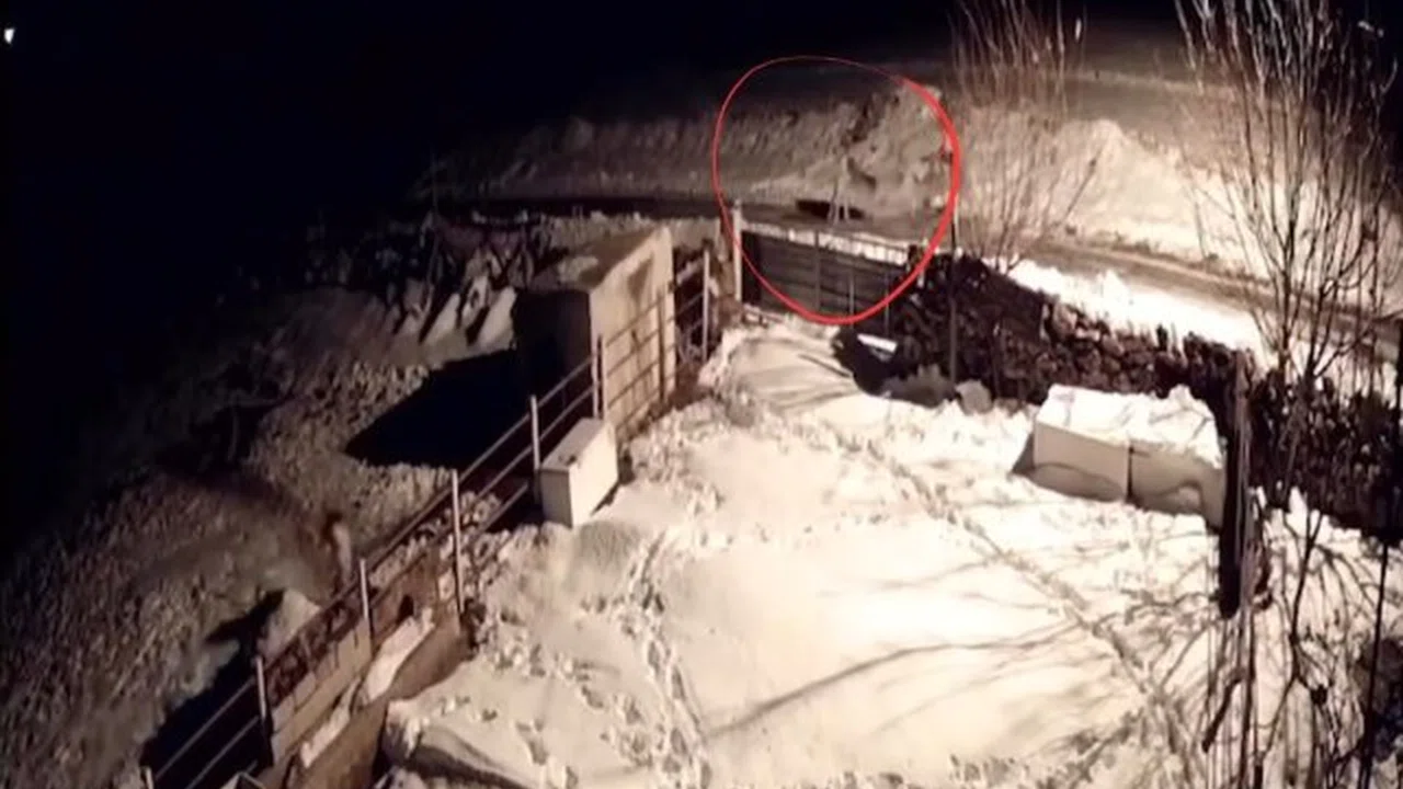 Kayseri'nin Tomarza ilçesinde aç kalan kurtların köpeklere saldırdığı anlar güvenlik kamerasına yansıdı.