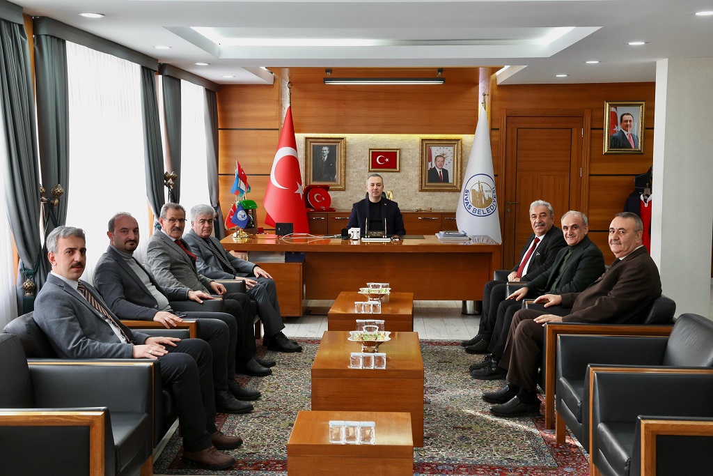 Sivas Zaralılar Yardımlaşma ve Dayanışma Derneği Başkanı Ahmet Taşkın ve yönetim kurulu üyeleri, Genç Müsiad Sivas Şube Başkanı Mücahit Enes Laçiner ve yönetim kurulu üyeleri, Sivaslı iş insanı Yurdal Epsileli Sivas Belediye Başkanı Adem Uzun'a ziyarette bulundu.