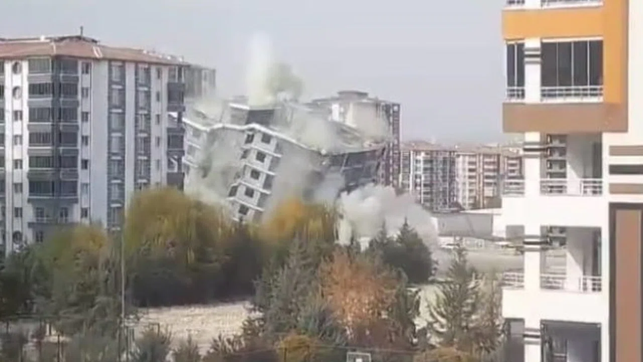 Kahramanmaraş merkezli 6 Şubat 2023 depremlerinden etkilenen Malatya'da ağır hasarlı binaların yıkım işlemlerine devam ediliyor. Yeşilyurt ilçesindeki yıkım çalışmalarında hasarlı 12 katlı bina, saniyeler içerisinde yerle bir oldu.