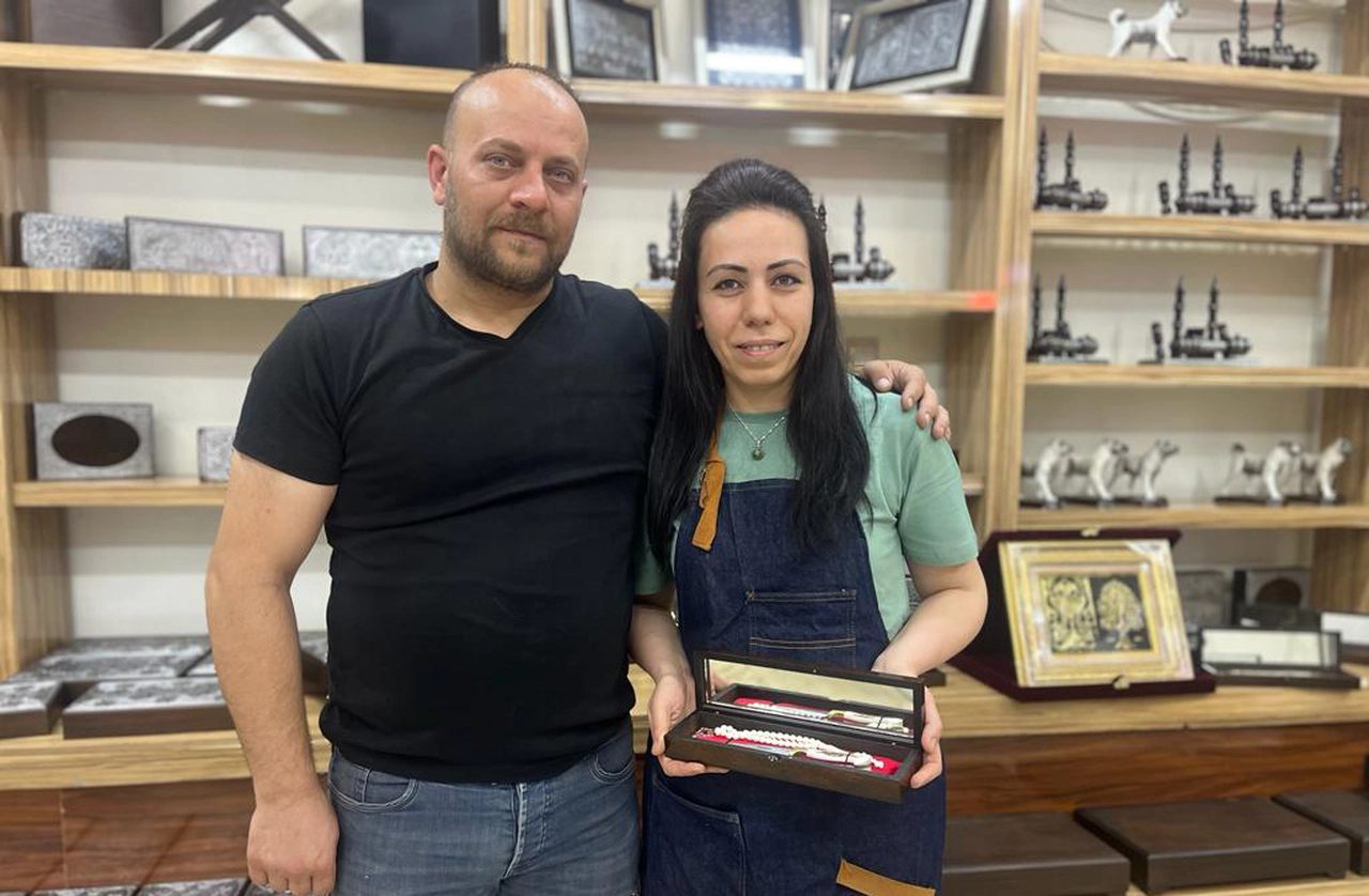 Birbirlerinden ayrılamayacak kadar yakın olan bu çift, evliliklerinin ilk gününden bu yana işlerini birlikte yürütüyor ve her geçen yıl daha fazla talep alarak sanatlarını geniş kitlelere tanıtıyorlar. Kadriye Tatlısu, 20 yılı aşkın süredir bu sanatı icra ettiğini ve eşinin yanında olmaktan büyük mutluluk duyduğunu belirterek, “Eşimle birlikte çalışıyoruz. Hem iş arkadaşıyız hem de eşiz. Ailecek çalışmaktan çok mutluyuz. Yaptığımız işte memleketimizden çok güzel talepler geliyor. Şehir dışı piyasamızda gayet güzel şekilde oturmuş durumda. Türkiye’nin her yerine hatta yurt dışına ürün gönderiyoruz. Ürün çeşidimiz çok fazla. Her şeyin imalatını da biz yapıyoruz. Eşimle birlikte çalışmak çok güzel bir duygu. İlk evlendiğimizde iş potansiyelimiz bu kadar yoktu ama birbirimize destek olduktan sonra işimizi geliştirdik. Birlikten kuvvet doğdu” diyerek işlerinin gelişiminden duyduğu memnuniyeti ifade etti.