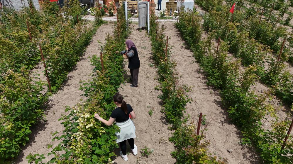Kayseri'de yaşayan Çetin Demir'in 5 yıl önce hobi olarak kurduğu organik bahçede ahududu toplanmaya başlanırken Demir; taleplere yetişmekte zorlandığını aktardı.