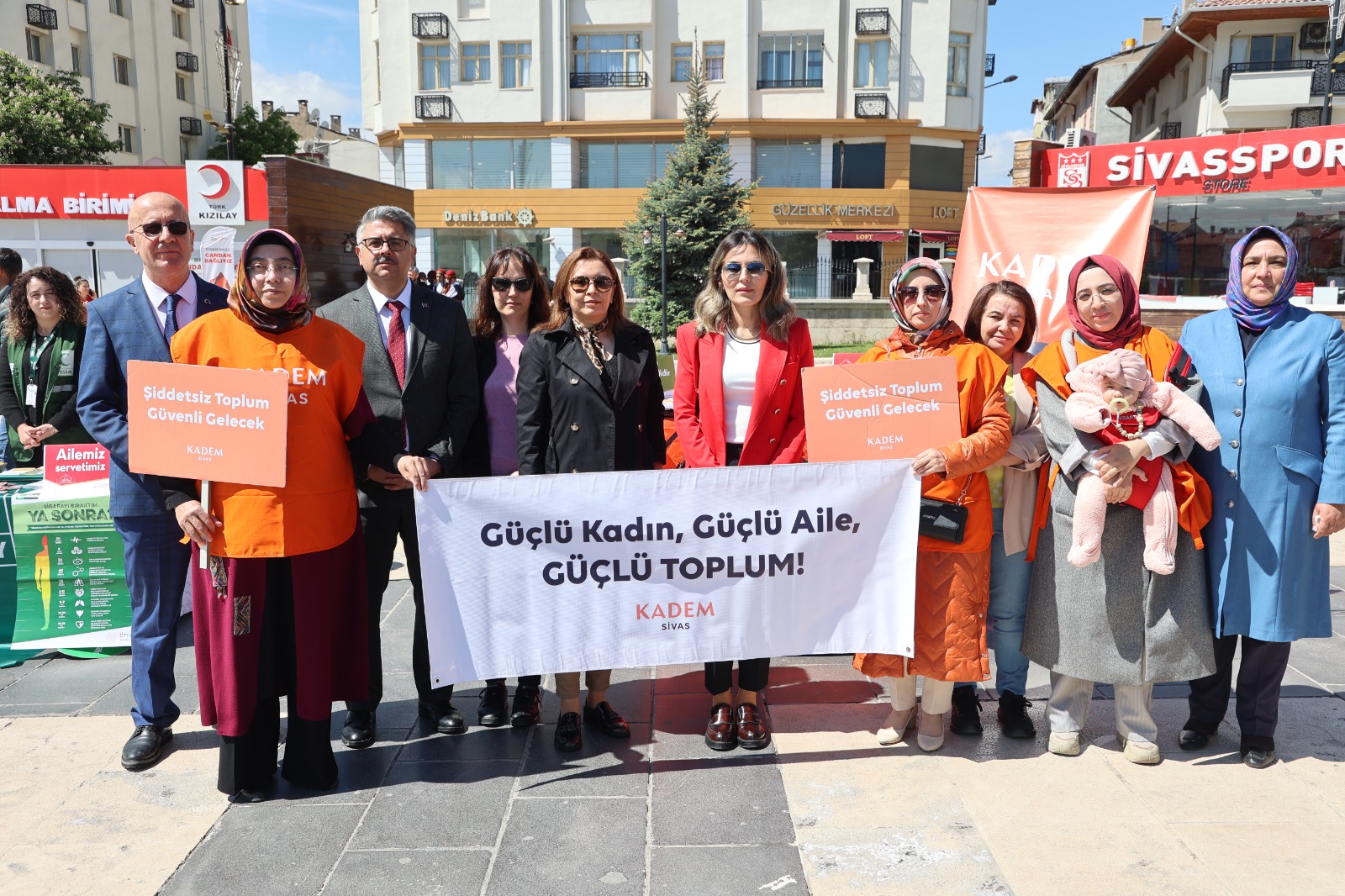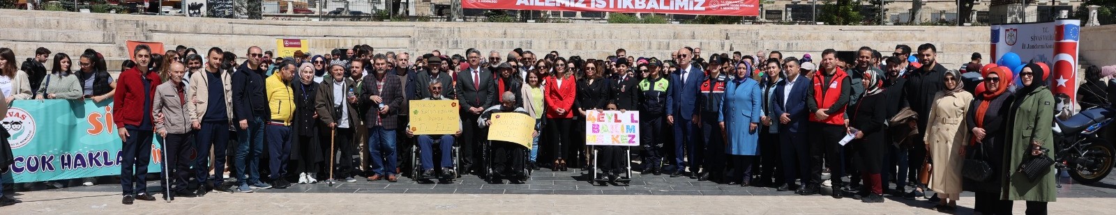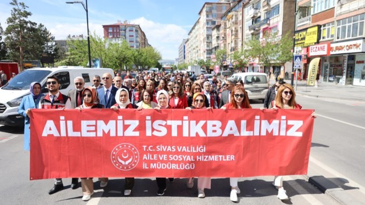 Sivas Valisi Yılmaz Şimşek'in eşi Dr. Çiğdem Olgun Şimşek, kurum müdürleri ve STK temsilcilerinin katıldığı yürüyüşte toplumda aile içi dayanışmanın önemine dikkat çekildi.