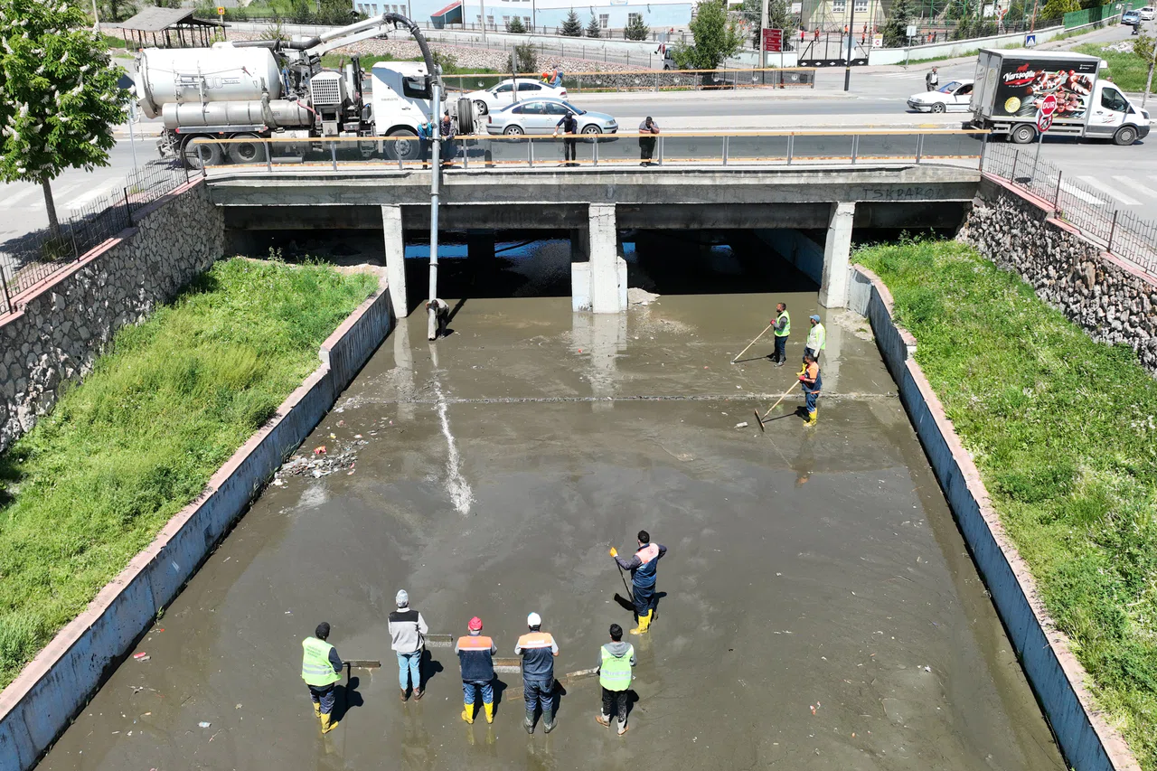 Sivas’ta uzun süren kış mevsimi ve yoğun yağışların ardından Aksu bölgesinde biriken yosun, çamur ve çeşitli atıklar, Sivas Belediyesi ekiplerinin titiz çalışmasıyla temizlenmeye başlandı.