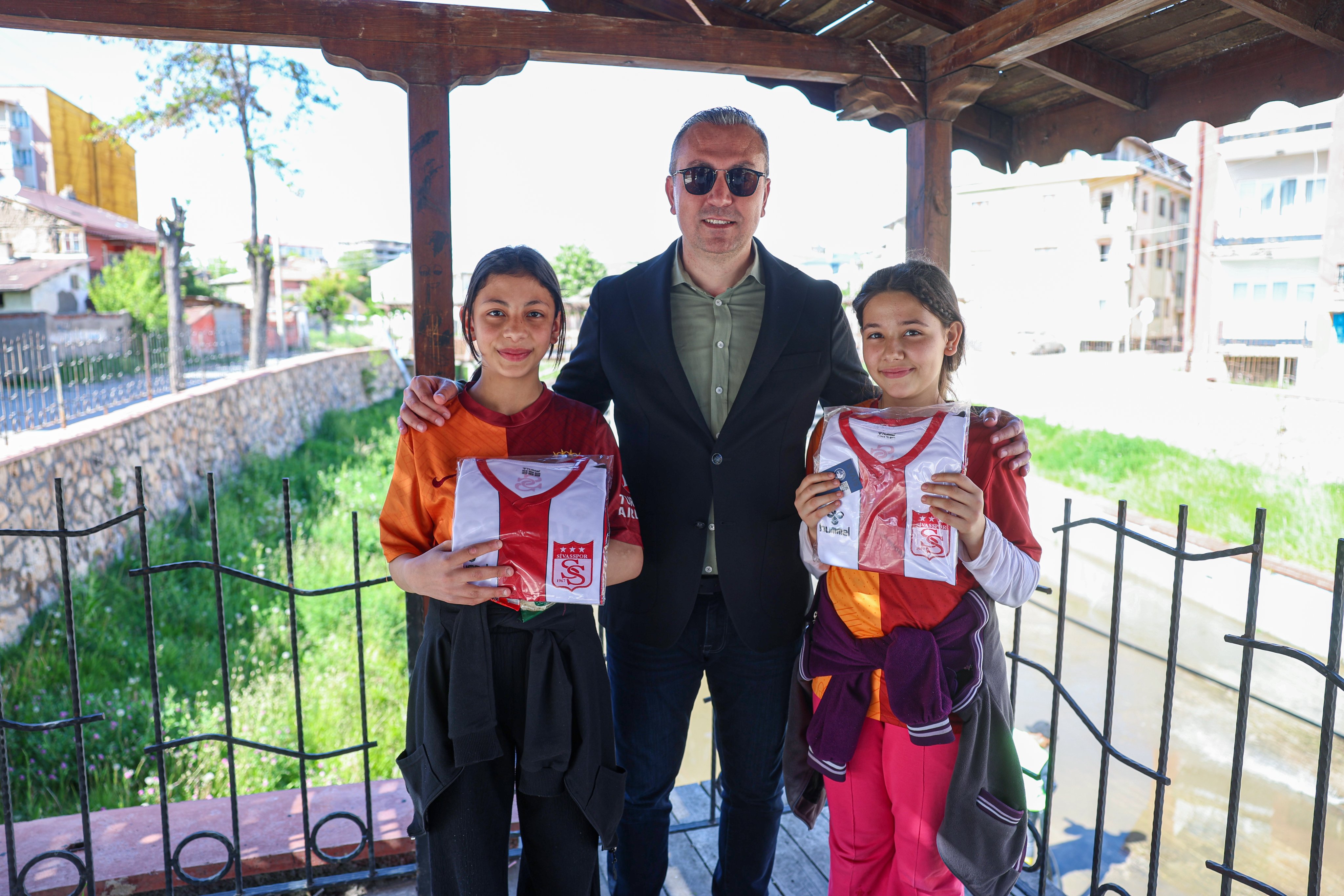 Aksu Mahallesi’nde çocuklarla da bir araya gelen Uzun, sıcak ve samimi diyaloglarıyla dikkat çekti. Karşılaştığı çocuklara Sivasspor forması hediye eden Başkan, hem minikleri sevindirdi hem de gönülleri kazandı. Forma hediyesiyle yüzleri gülen çocuklar, Başkan Uzun’a teşekkür etti.