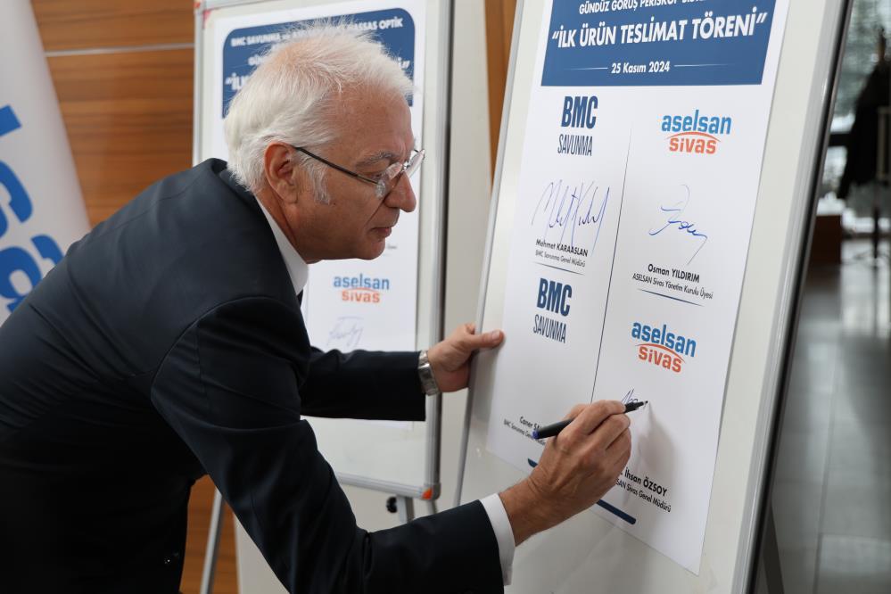 ASELSAN Sivas Genel Müdürü Dr. İhsan Özsoy yaptığı konuşmada, “Bugün ALTAY tankları için ürettiğimiz periskop sistemlerinin üretimini tamamladık ve BMC firmamıza teslimini gerçekleştiriyoruz. Burada gördüğünüz periskop sistemleri ALTAY tankının içerisinden dışarıyı gözetleyebildiğimiz gündüz görüş sistemleri. Bunların üretimi tamamen yerli ve milli olarak Sivas"ta yapıldı. İlk ürün testlerini tamamladıktan sonra teslimat aşamasına geldik. BMC firmamızın desteğiyle yerli ve milli bu ürünü geliştirdik. Kendilerinin desteği ile yerli ve milli bu ürünü geliştirip Türkiye"nin envanterine kattık ve ALTAY tanklarında kullanacağız. Bu nedenle kendilerine teşekkür ediyoruz” dedi.