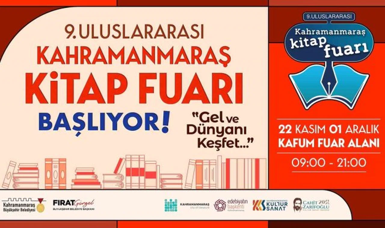 Kahramanmaraş'ta Büyükşehir Belediyesi tarafından düzenlenecek 9. Uluslararası Kitap Fuarı, 22 Kasım Cuma günü misafirlerini ağırlamaya başlayacak. Fuarda, 140 yayınevi ve yüzlerce yazar ile şair, edebiyatseverlerle buluşacak. İmza günleri, söyleşiler ve paneller gibi zengin içerikli etkinliklerle edebiyatın kalbi bir kez daha Kahramanmaraş'ta atacak.