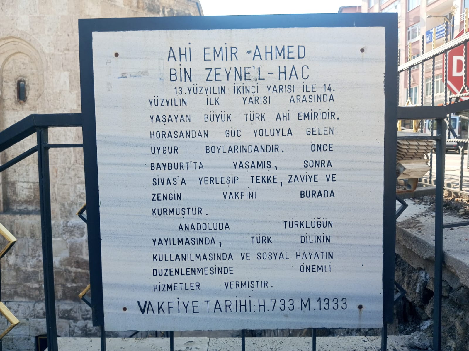 13.yüzyılın ikinci yarısıyla 14. yüzyılın başlarında yaşamış olan Ahi Emir Ahmed bin Zeynel-Hac, Horasan’dan Anadolu’ya göç eden Uygur boylarının izlerini taşır. İlk olarak Bayburt’ta yaşamını sürdüren bu önemli Türk büyüğü, daha sonra Sivas’a yerleşmiş ve burada kurduğu tekke, zaviye ve vakıflarla adını tarihe yazdırmıştır. Ahi Emir Ahmed, Anadolu’da Türklüğün kökleşmesine, Türk dilinin benimsenmesine ve sosyal düzenin inşasına öncülük etmiştir.