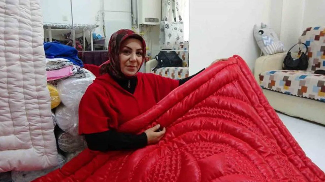 Yozgat'ın Sorgun ilçesinde yaşayan Gülsüm İncekara, annesinden öğrendiği yorgancılığı, kendi iş yerini kurarak devam ettiriyor.