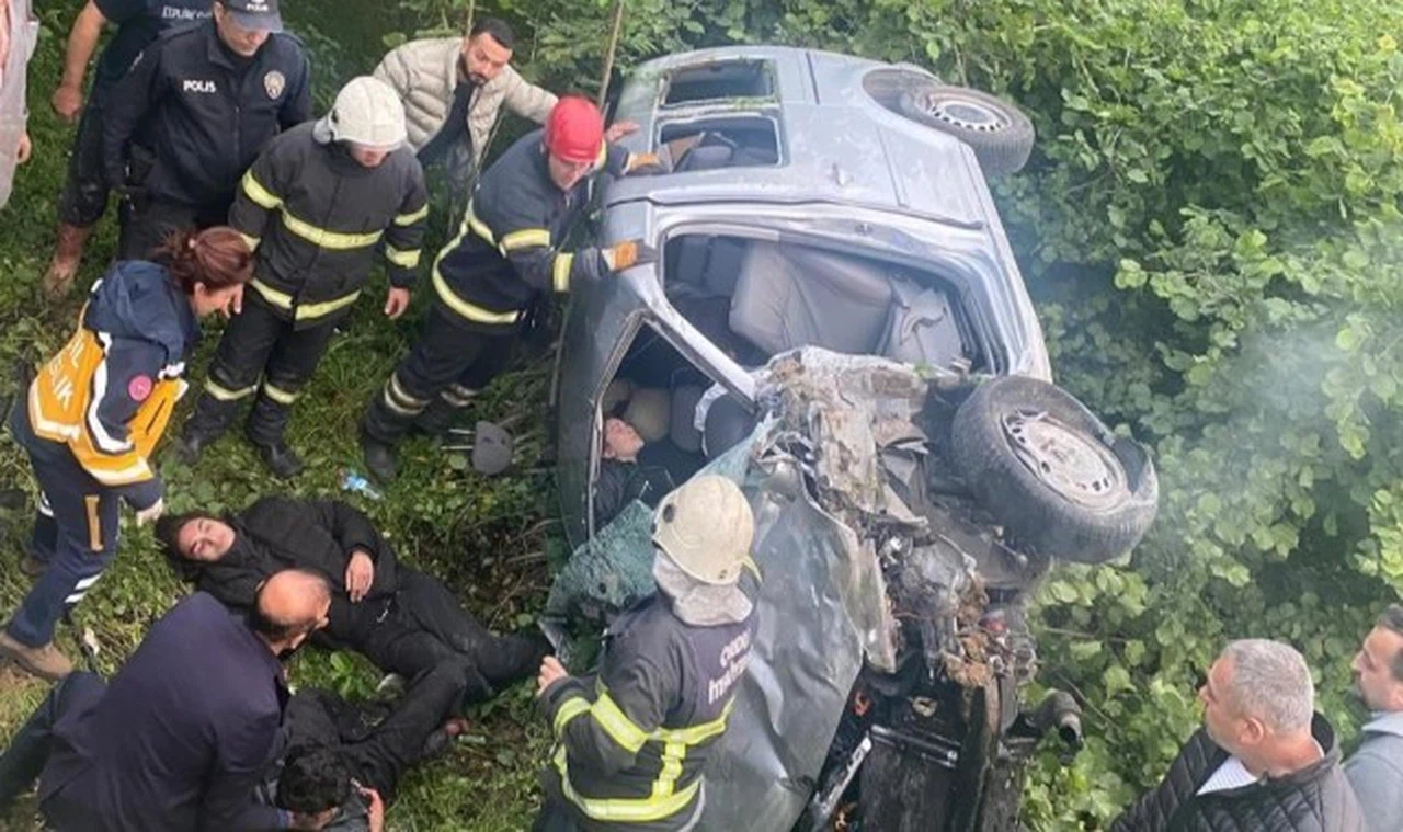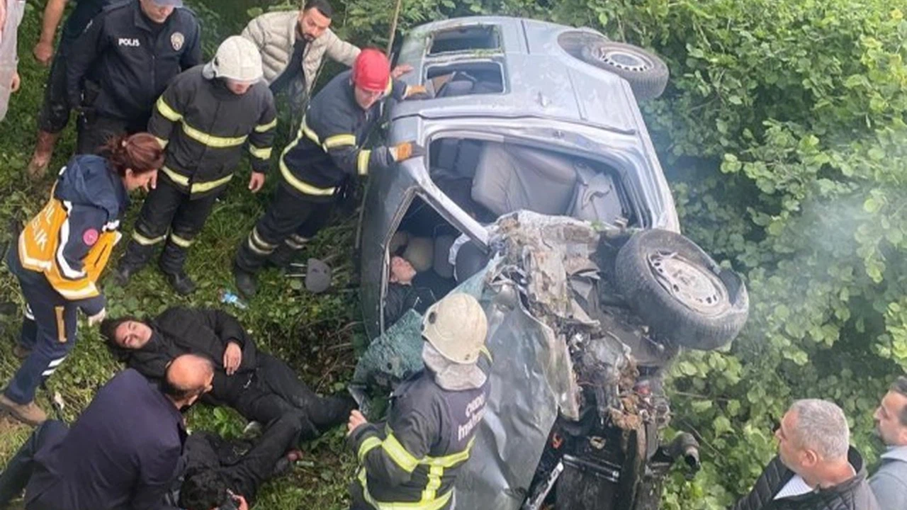 Ordu"da kontrolden çıkan hafif ticari aracın bahçeye uçarak takla atması sonucu meydana gelen trafik kazasında 5 kişi yaralandı.