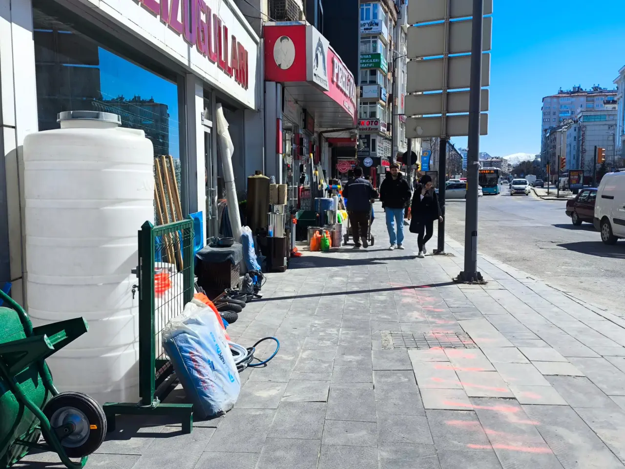 Atatürk Caddesi üzerinde faaliyet gösteren bazı esnafların, vitrin alanlarını fiziksel olarak dışarıya taşırma gayreti, kaldırımlarda karmaşık bir tabloya yol açıyor. Mağaza önlerine gelişi güzel dizilen plastik kovalar, inşaat malzemeleri, el arabaları ve çeşitli hırdavat ürünleri, caddenin estetik dokusunu bozuyor. Esnaf açısından ürünleri daha görünür kılmak adına yapılan bu tercih, çevre sakinleri ve yayalar tarafından "görüntü kirliliği" olarak tanımlanıyor.
