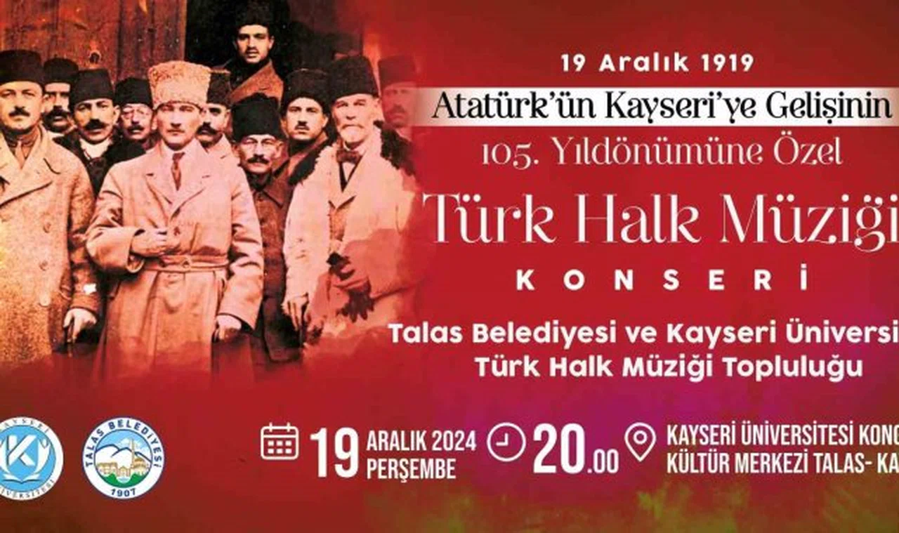 Talas Belediyesi ve Kayseri Üniversitesi (KAYÜ) Türk Halk Müziği Toplulukları tarafından Atatürk'ün Kayseri'ye gelişinin 105. yılı münasebetiyle düzenlenecek ortak konsere sayılı saatler kaldı.