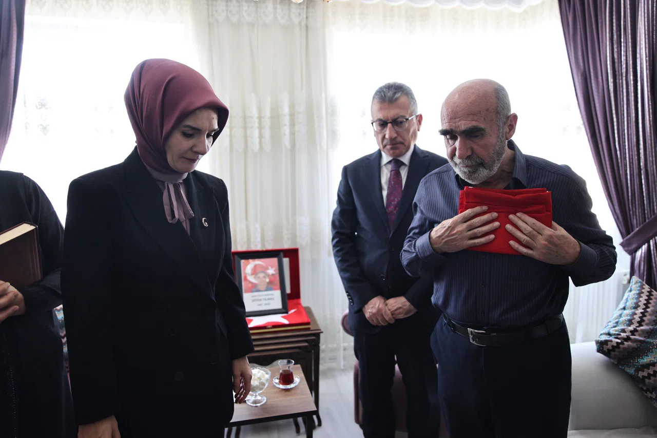 İstanbul’da şehit olan polis memuru Şeyma Yılmaz’ın Sivas'ta ki baba ocağına AK Parti Grup Başkanı Abdullah Güler ve Aile ve Sosyal Hizmetler Bakanı Mahinur Özdemir ziyarette bulundu. Ziyaret sırasında, Şeyda Yılmaz’ın ailesine taziye dileklerinde bulunan yetkililer, şehidin aziz hatırasını andı.