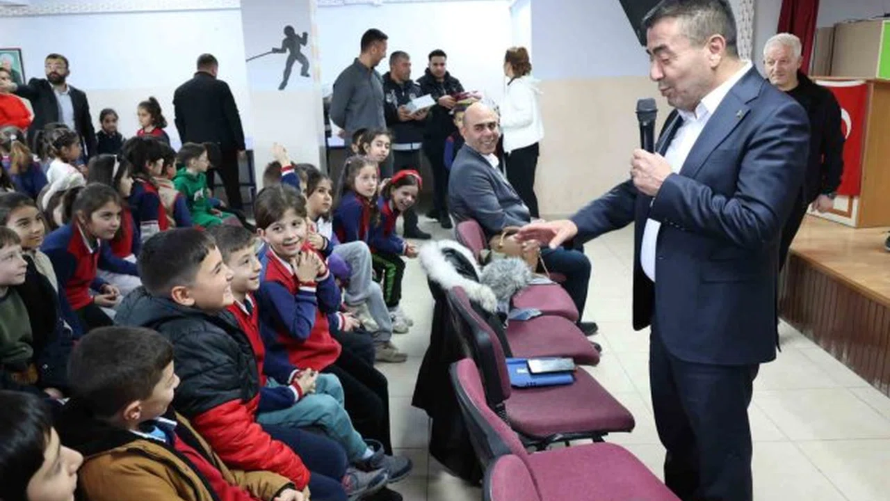 Bünyan Belediye Başkanı Selahattin Metin, ilçedeki öğrencilere hediye dağıttı.