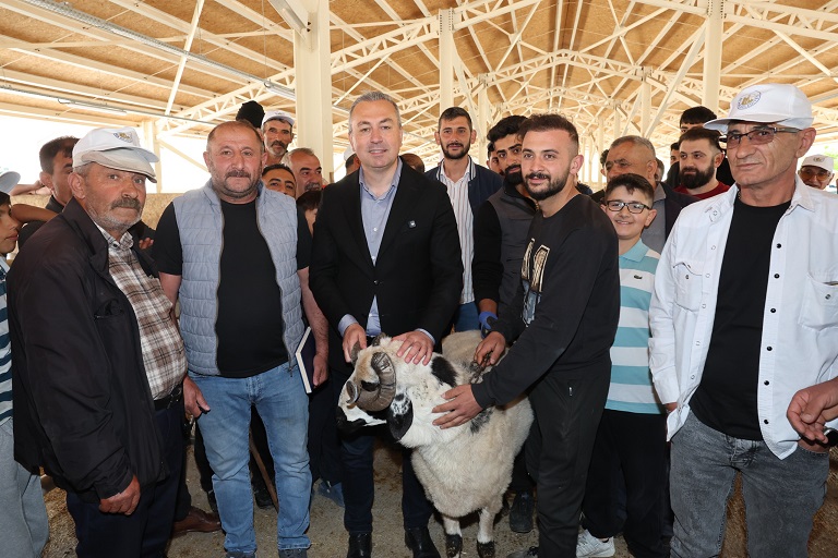 Bayram öncesinde pazar alanını ziyaret eden Belediye Başkanı Adem Uzun, hem hayvan yetiştiricileri hem de vatandaşlarla bir araya geldi.