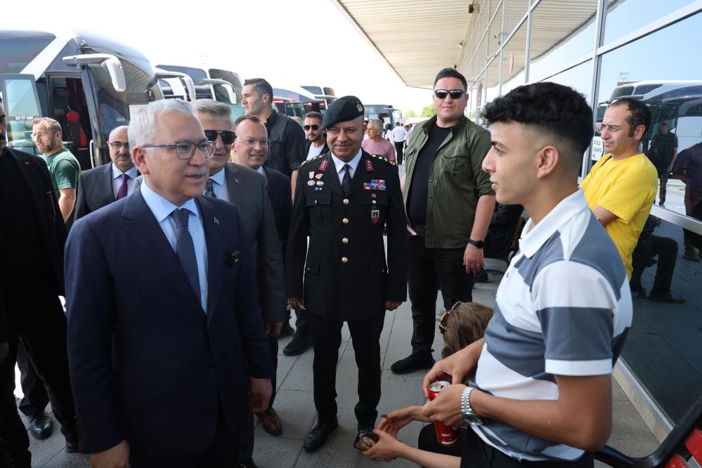 Denetimleri yerinde gördüklerini kaydeden Vali Şimşek ise, "Öncelikle hemşehrilerimizin, tüm vatandaşlarımızın Kurban Bayramı'nı kutluyorum. Kazasız belasız sevdikleriyle birlikte huzur içerisinde güzel bir bayram diliyorum. Tabii bayramın başlamasıyla birlikte şehirler arası yollarda, şehir içindeki kaldırımlarda ve şehir içi trafikte büyük bir yoğunluk söz konusu. Bu yoğunluğun yaşandığı yerlerden birisi de şehirler arası otobüs terminali. Bizler de Belediye Başkanımızla, Emniyet Müdürümüzle, Jandarma Komutanımızla birlikte şehirler arası terminalimize gelerek hem vatandaşlarımızın bayramını kutladık, onlara ‘hayırlı yolculuklar' diledik, ‘hoş geldiniz' dedik. Bir taraftan da burada alınan tedbirleri yerinde gördük. Bizler özellikle bu bayramda trafik güvenliğine yine çok büyük önem veriyoruz. Önceliğimiz yollardaki bu yoğunluktan kaynaklanan trafik kazalarının önüne geçmek. Bu anlamdaki tedbirlerimizi artırarak devam ettiriyoruz. Bu amaç doğrultusunda bayram boyunca ortalama 227 ekibimiz, 700 civarında personelimiz bayram boyunca dron destekli, radar destekli görev yapacak. Amacımız kazaların önüne geçmek, vatandaşlarımızın sevinçlerinin hüzne dönüşmemesi" şeklinde konuştu.